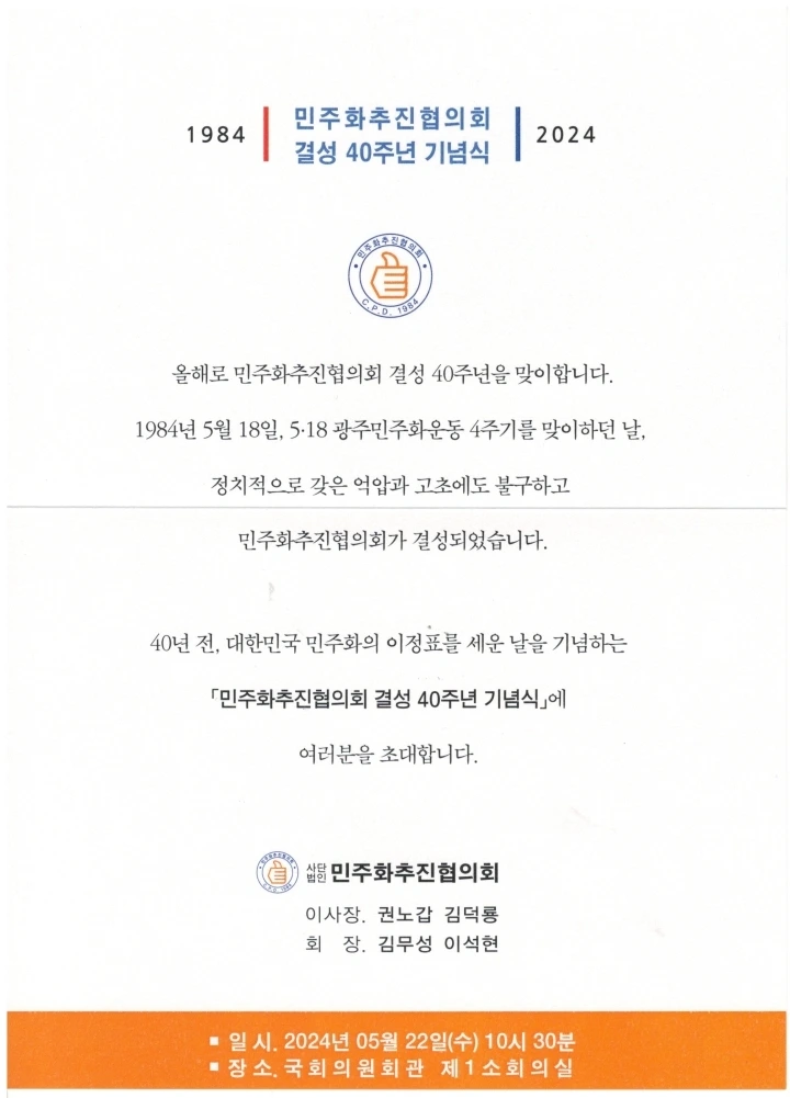 민추협 위원인 이성헌 서대문구청장이 낭독한 민주투쟁 선언의 한 대목처럼 민추협이 있음으로 인해 ‘국기에 대한 경례’에서 나오는 자유롭고 정의로운 대한민국 민주주의 길을 열어젖힐 수 있었기 때문이다.