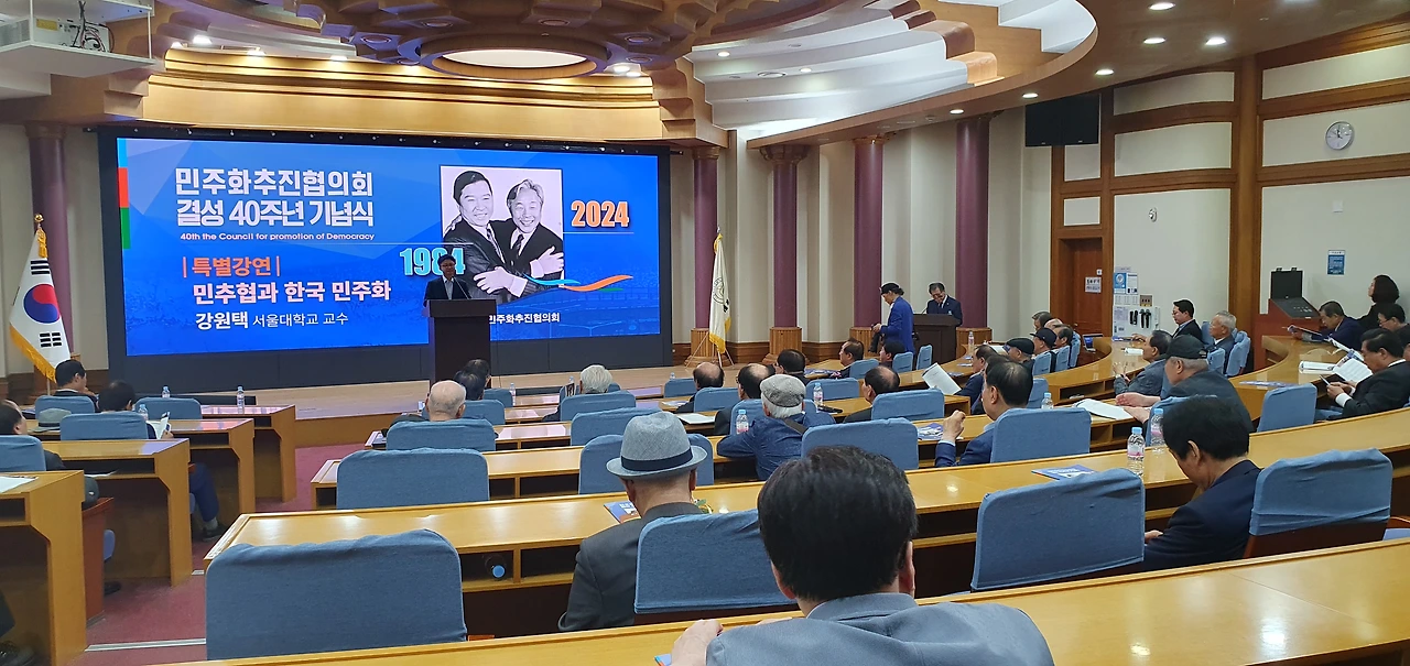 흡사 김덕룡 이사장으로 시작돼 정대철 회장까지 현실 정치권을 향한 따끔한 메시지들이 애정어리지만 엄중하게 좌중을 압도해나는 분위기였다. 한편으로 각 당을 대표해 참석한 일부 정치인들은 각자의 이해 방식으로 아전인수식 접근을 한 것은 아닌가 싶어 아쉬움을 남기기도 했다. 이를 의식한 듯 40주년 행사답게 많은 현역 정치인들 참석해 준 것에 고마움과 의의를 갖는다고 한 인사는 말했다.