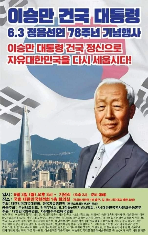 "이승만 대통령 건국 정신으로 자유대한민국을 다시 세웁시다"