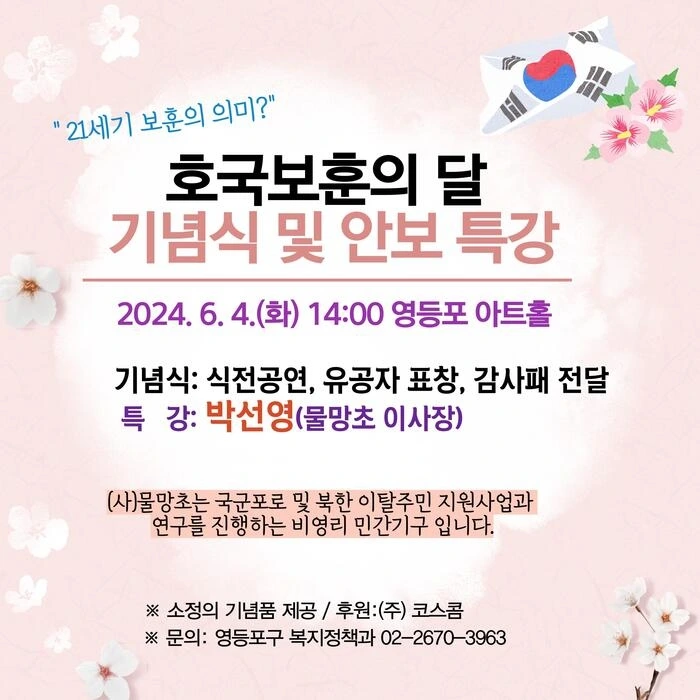 - 최호권 영등포구청장에게 5월은 정원만들기 달이였다면, 6월은 호국의 달이다.