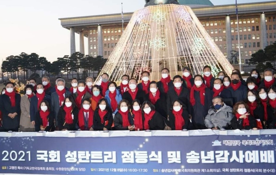 지난 8일 국회의사당 잔디광장 분수대 앞에서 성탄트리 점등식이 거행되었다. 갈등과 대립의 극단의 적대적 진영정치가 펼쳐지는 국회에도 화해와 일치의 성탄의 기운이 임하기를 크리스마스트리 앞에서 진심으로 기도드렸다.
