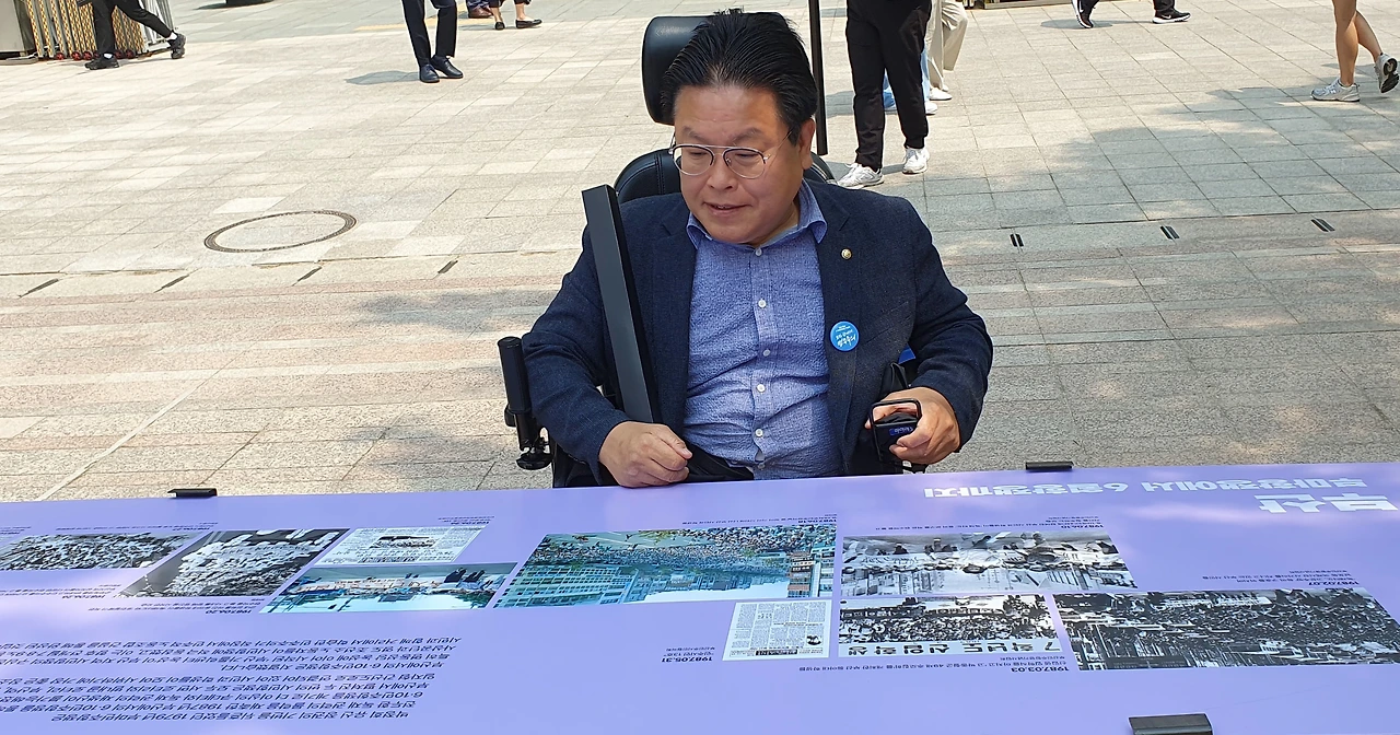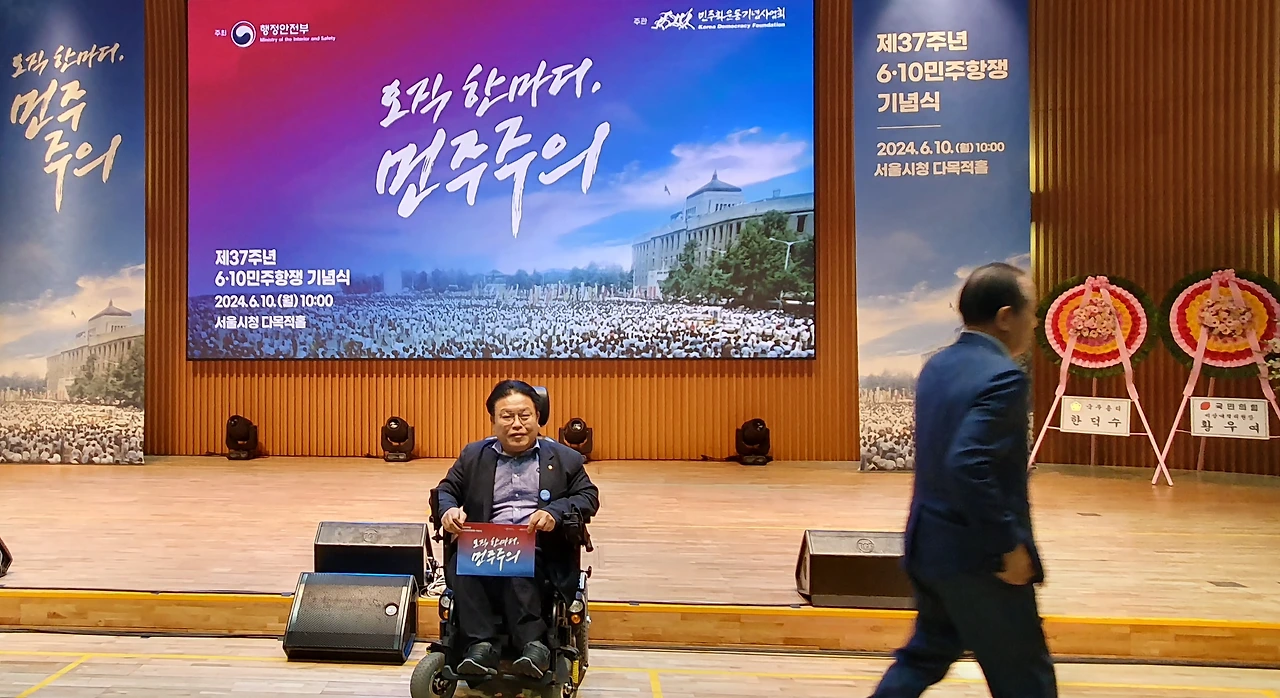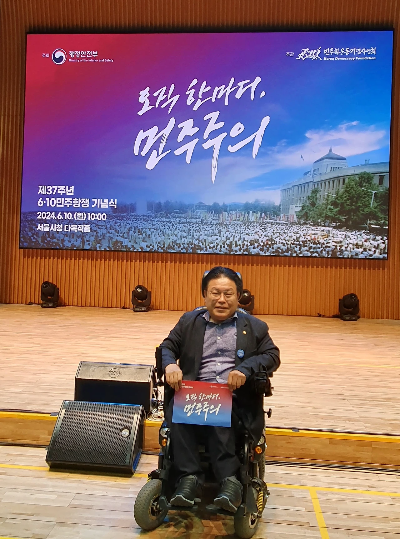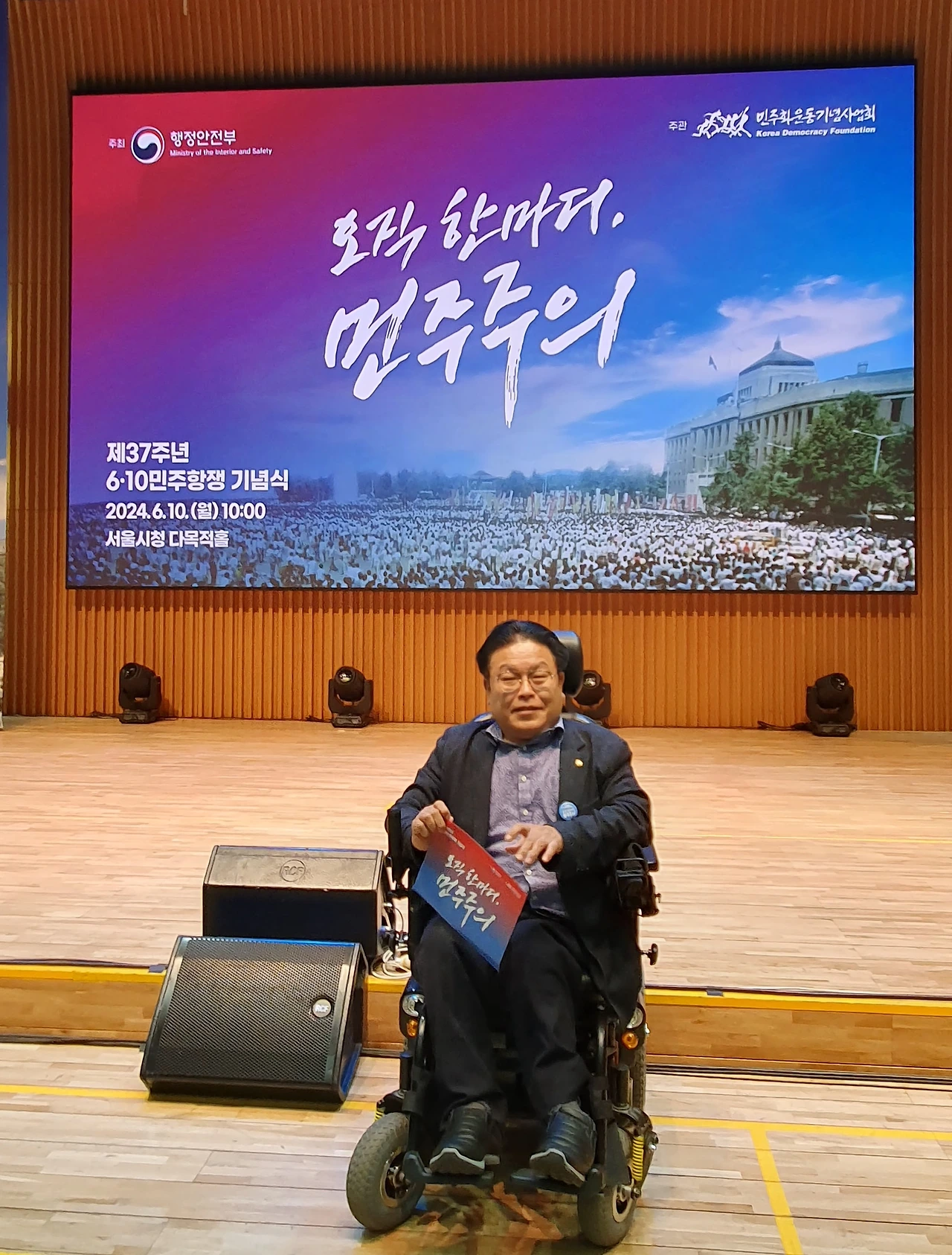 - 나는 1987년 당시 부산에서 함께 했었다. 수건으로 입을 가리고 최루가스마저 마시면서 휠체어를 굴리며 부산 국제시장, 가톨릭센터 등을 오르락내리락 했었다.