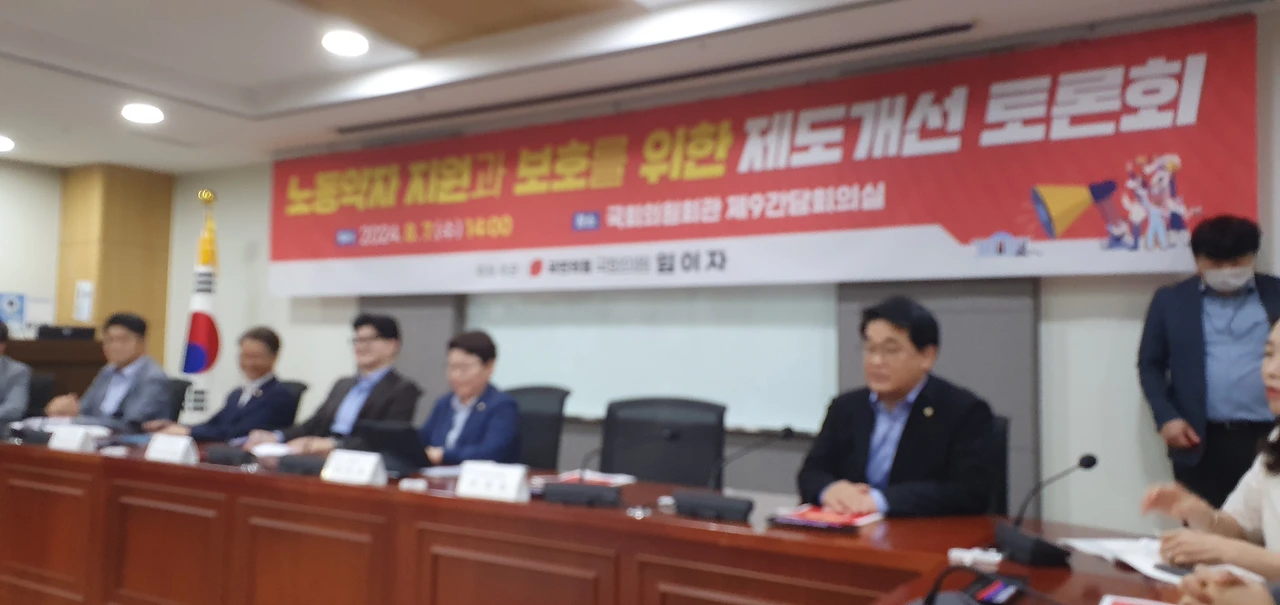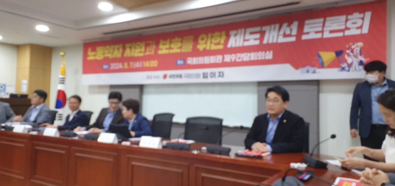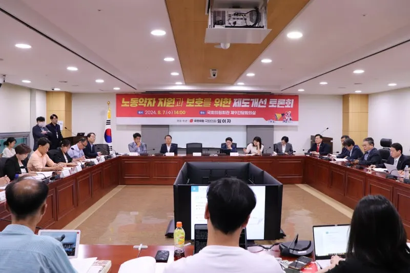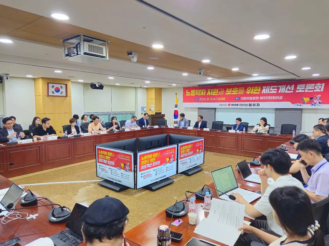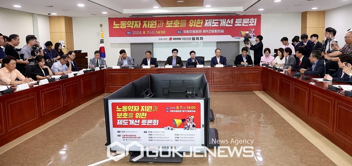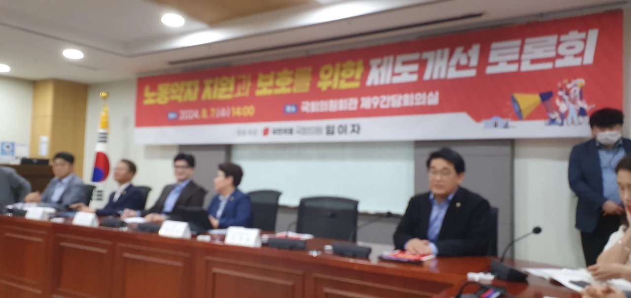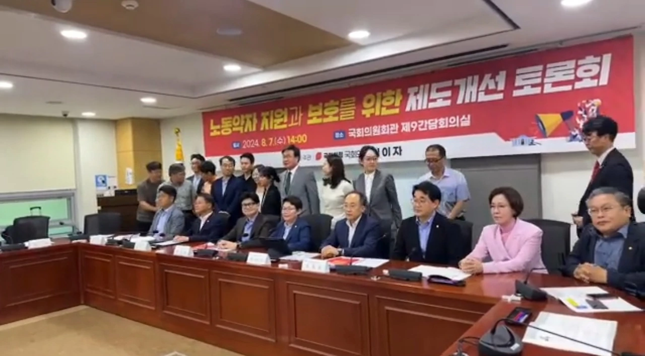 임 의원은 “4차 산업혁명으로 촉발된 노동시장 변화로 사회안전망 사각지대에서 충분히 보호받지 못하는 이들에 대한 대책 마련이 시급하다”며 “한국의 임금근로자가 2200만명이지만, 노조법 2·3조 개정안(노란봉투법)이 노조에 가입된 240만명을 위한 것이라면 노동약자보호법은 노동법 보호 범위에 들어올 수 없지만 사회적 보호가 필요한 지원법”이라며 “노동약자보호법 제정을 적극 추진하겠다”고 밝혔다.