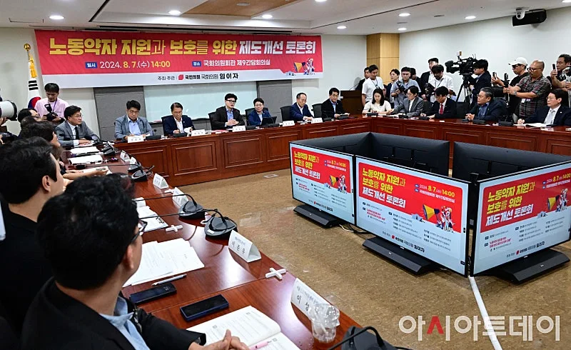 정부는 노동약자지원법 입법 의지를 재확인했다. 이정식 고용부 장관은 “플랫폼, 프리랜서 등 기존 법제도 사각지대에 있는 분들이 많이 계신다”며 “이들을 제대로 보호하고 사각지대를 해소하는 것은 국가의 기본 책무고 노동개혁이 궁극적으로 도달하고자 하는 목표 중에 하나다. 훌륭한 제도가 만들어질 수 있도록 노력하겠다”고 말했다.