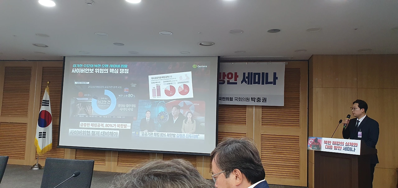 발제자인 문종현 지니언스 시큐리티 센터장은 북한의 사이버 공격 기술과 그 변화 양상을 집중적으로 설명했다. 그는 국정원의 발표에 따르면 하루 평균 162만 건의 사이버 공격이 이루어지고 있으며, 이 중 약 80%가 북한발이라고 언급했다.