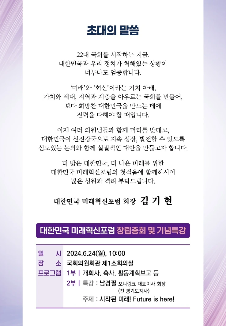 대한민국 미래혁신포럼(회장 김기현) 창립총회 및