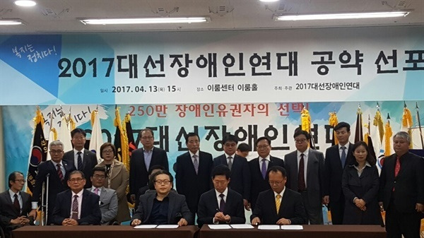 ▲ 다시 대선은 시작되고.. 지난 2017년 4월 13일 서울 영등포구 이룸센터 이룸홀에서 열린 2017 대선 장애인연대 공약 선포식 ⓒ 정중규