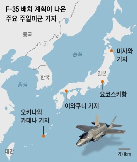 미국의 5세대 스텔스 다목적 전투기인 F-35 배치 후보로 꼽히는 주일미군 주요 기지 이름과 위치/그래픽=조선디자인랩 이연주