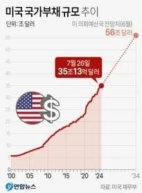 미국 입장에서 국가 부채(national debt)가 눈덩이처럼 불어나는 것도 빼놓을 수 없는 원인이다. 미국 국가부채는 근래 100여일 마다 1조 달러씩 급증하고 있다. 실제로 2023년 6월 15일 32조 달러이던 국가 부채는 1년 여만인 2024년 7월 하순 사상 처음 35조 달러(약 4경 7610조원)를 돌파했다. 미국이 매년 갚는 이자(利子) 금액은 그해 총국방비 지출액 보다 많다. 미국은 슈퍼 파워가 아니라 ‘지쳐가는 거인’이다.