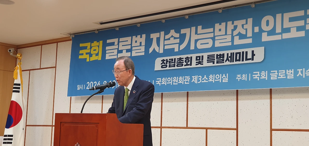 반 전 총장은 "국회의원은 다른 일로 너무 바쁘다. 21대 국회에서는 기후변화특위를 만들고 6번 만났다. (이러는데) 4년 동안 국회의원들이 기후위기 문제를 해결한다고 할 수 있겠느냐"라며 "그러니 (우 의장에게) 의장이 꽉 쥐고 상설위원회로 만들었음 좋겠다(고 전했다)"고 말했다.