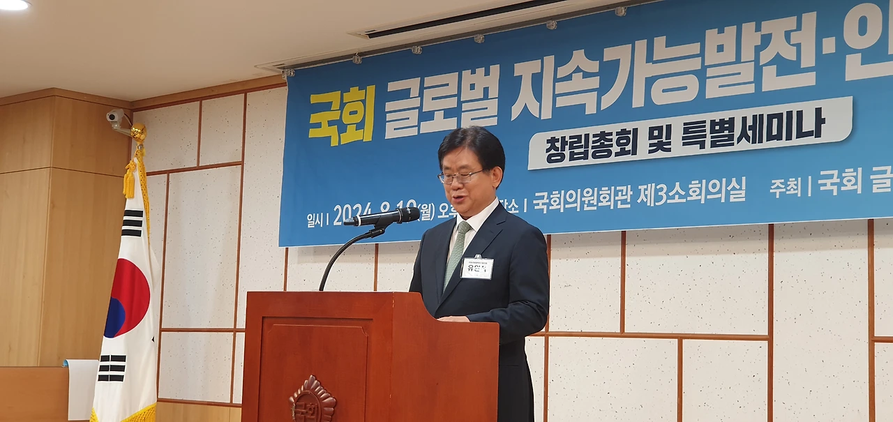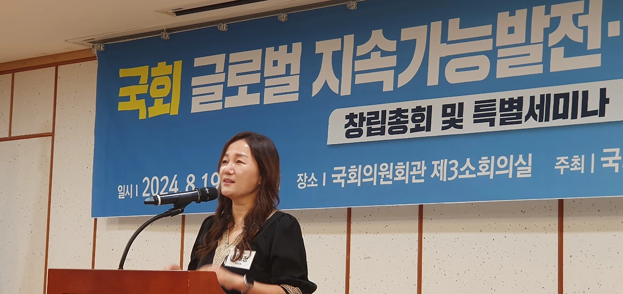 그러면서 "22대 국회 때 (이를) 완전히 상설화해 여기서 예산도 (집행)하고, 결정도 하고 법안도 만들고 이렇게 하지 않으면 따라갈 수가 없다"며 "그렇다고 해서 사실 우리 혼자 해도 안된다. 전 세계가 다 해야한다. 지금 이 문제는 유엔이 최우선순위로 두고 있다"고 역설했다.