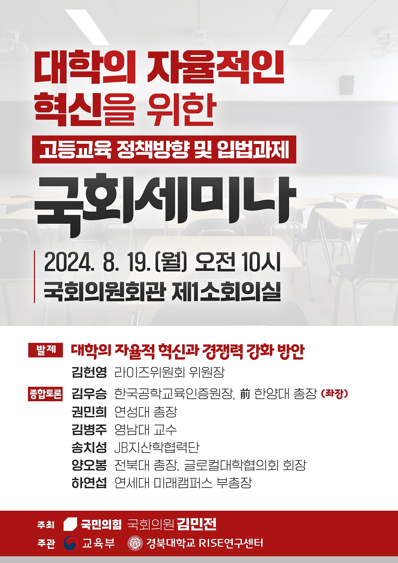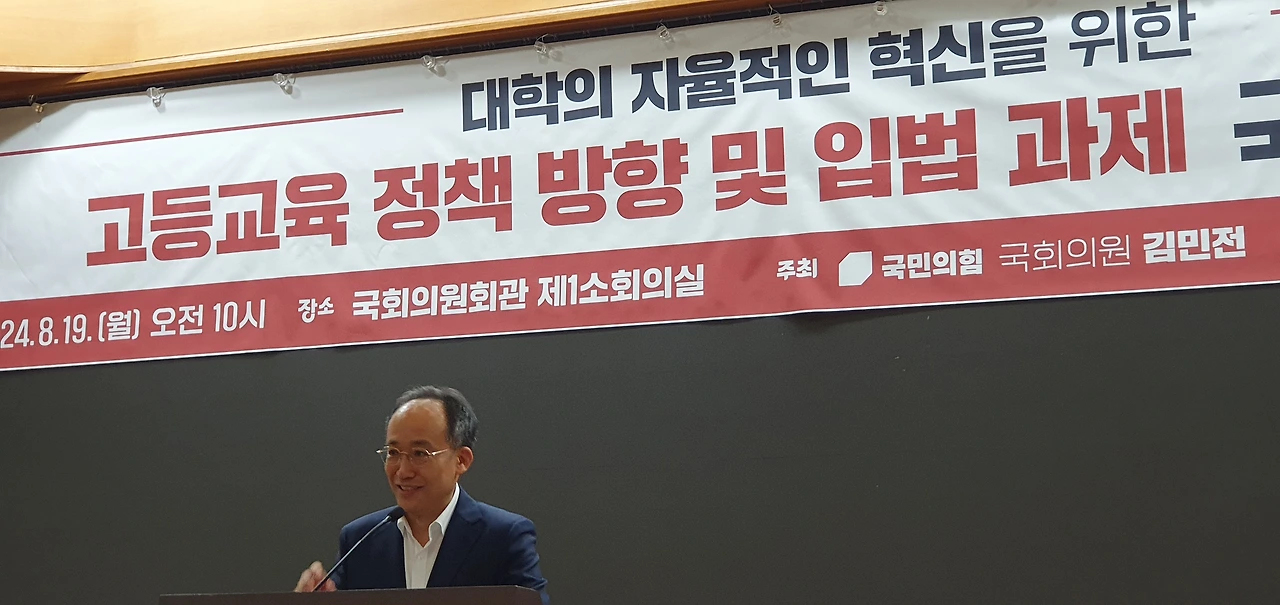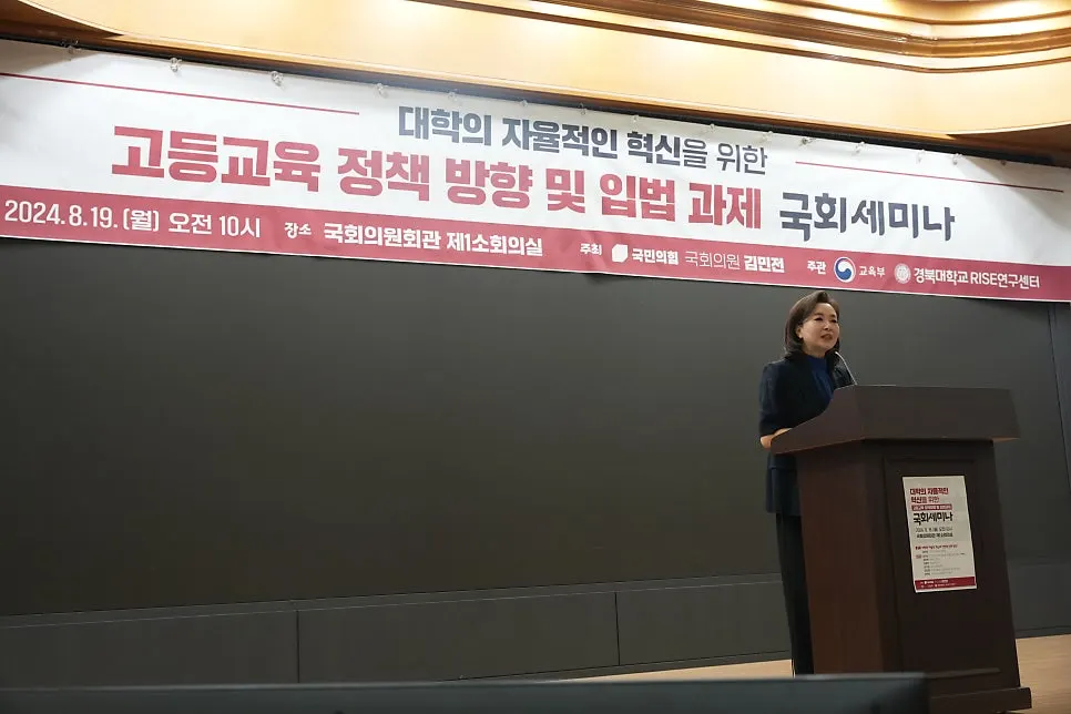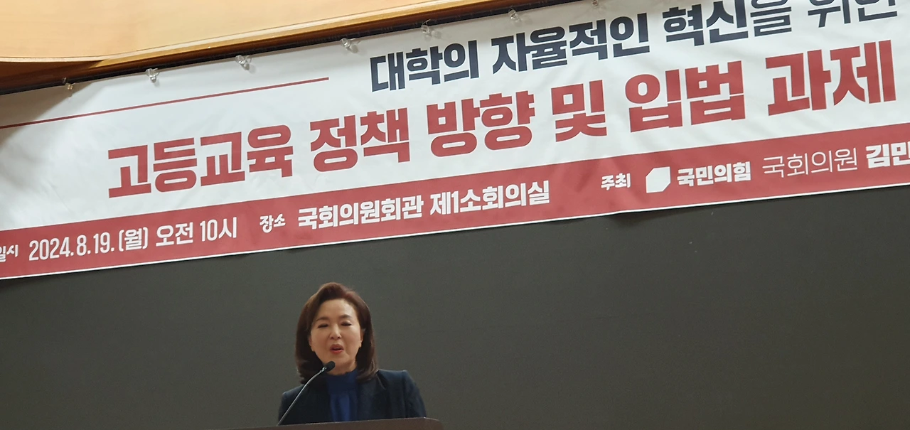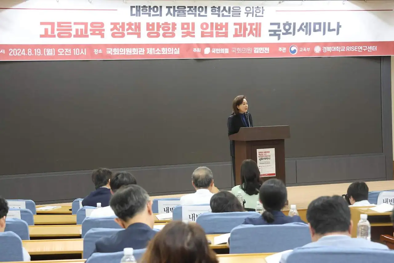 국민의힘 김민전 의원(비례대표/국회 교육위)은 8월 19일(월) 오전 10시 국회 의원회관 제1소회의실에서 「고등교육 정책방향 및 입법과제 국회세미나」를 개최했다.
