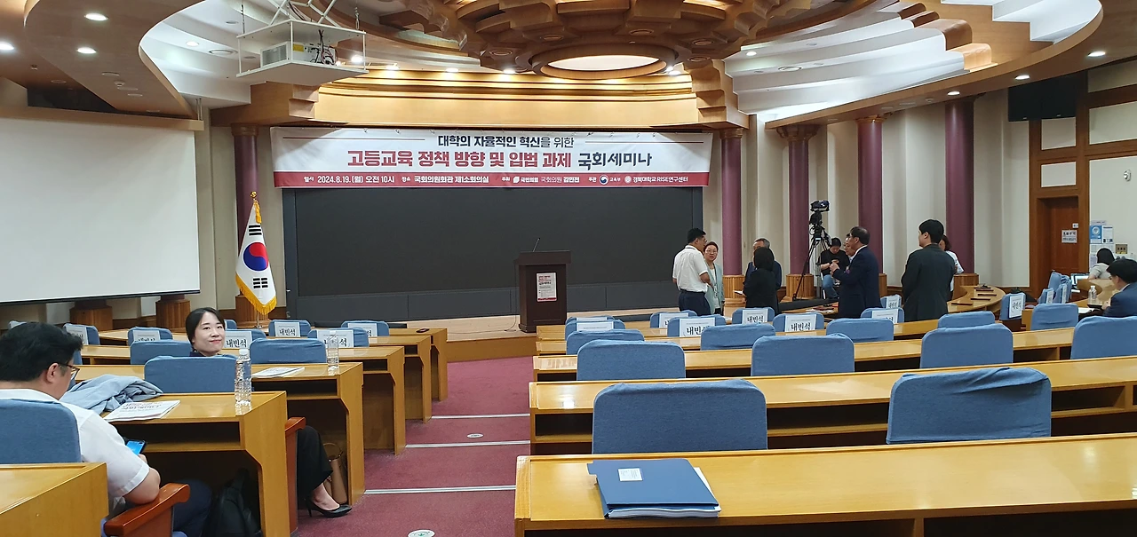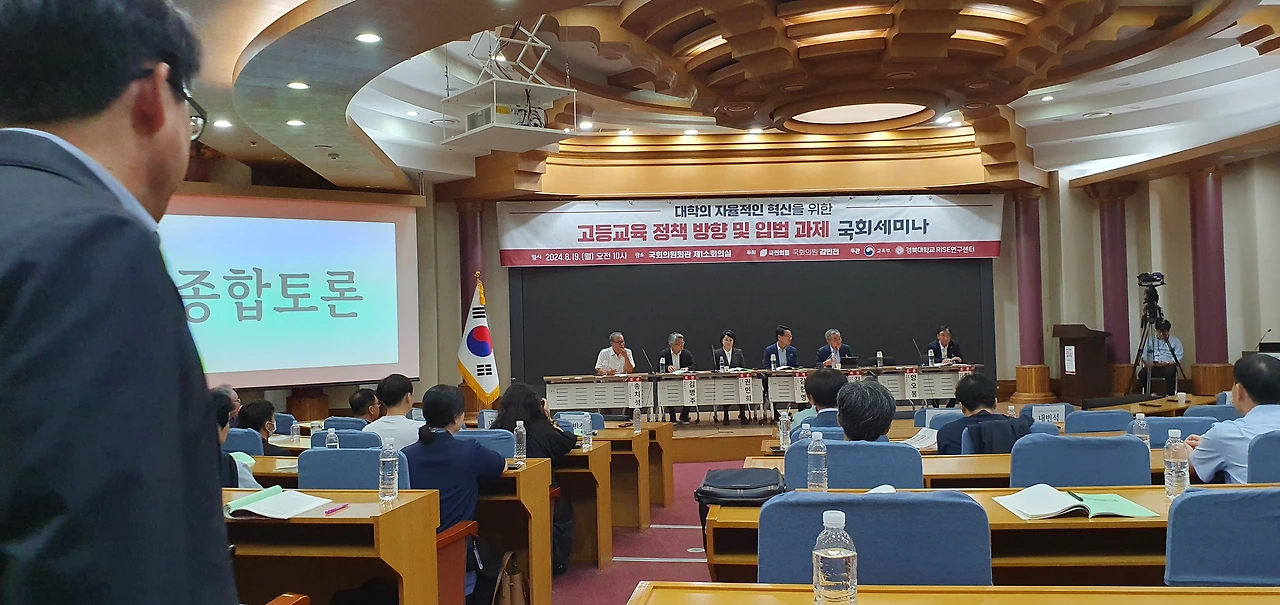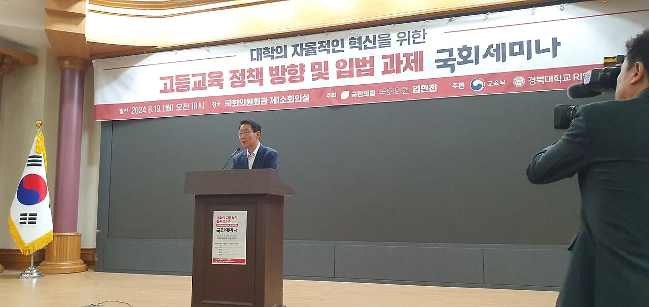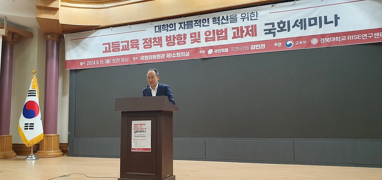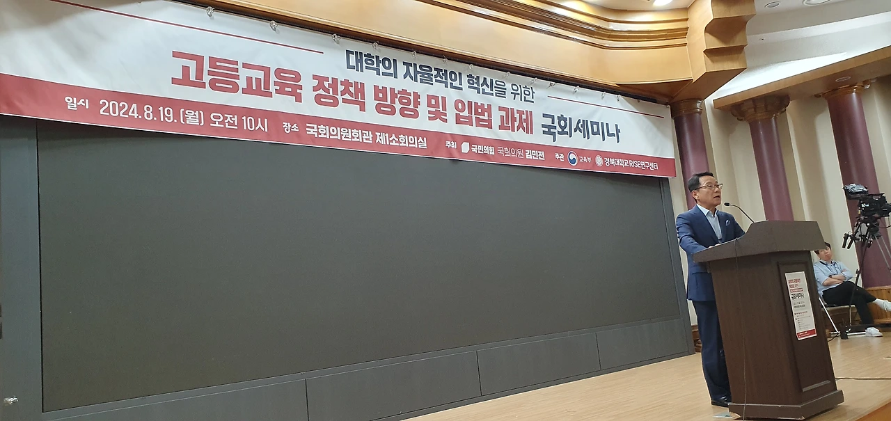 「고등교육 정책방향 및 입법과제 국회세미나」는 변화하는 시대에 발맞춰 대학의 자율적인 혁신을 도모하고, 지역과 대학 간 상생 발전 모델 구축을 위한 방안을 모색하기 위해 국민의힘 김민전 의원실이 주최하고, 교육부와 경북대학교 RISE연구센터가 공동 주관했다.