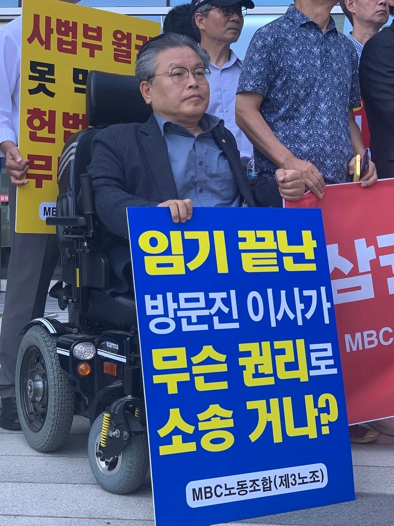 MBC노조 등은 "그러한 의혹은 아직 본안판결이 나기도 전에 직무수행 권한이 남아 있는 방문진 신임 이사의 선임행위를 간단히 무효화시켜 원고적격을 인정해 버린 판사의 독단적이고 모순적인 결정에서 확연히 드러난다"며 "공영방송 정상화를 열망하는 수많은 국민과 언론 종사자들의 희망을 무참히 밟아버리고, 대한민국의 헌법정신을 유린하는 이러한 '정치판결'이 다시는 대한민국의 법정에서 나오지 않기를 희망한다"고 밝혔다.
