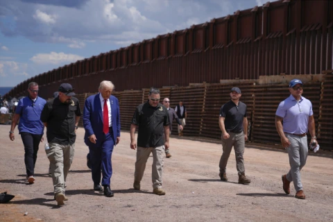 미국 남부 국경지대를 둘러보는 트럼프. AP연합뉴스 미국 남부 국경지대를 둘러보는 트럼프. AP연합뉴스