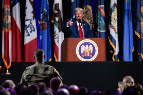 미 국가방위군협회 총회서 연설하는 트럼프. AFP연합뉴스 미 국가방위군협회 총회서 연설하는 트럼프. AFP연합뉴스