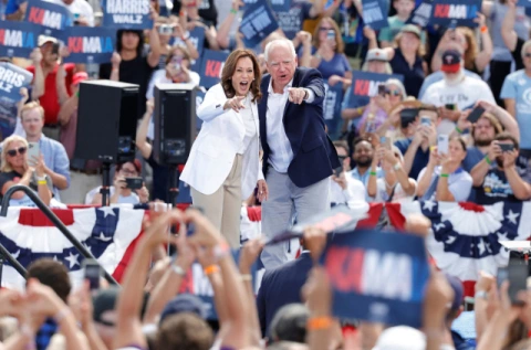 미 민주 부통령 후보 수락 연설하는 월즈. 로이터연합뉴스 미 민주 부통령 후보 수락 연설하는 월즈. 로이터연합뉴스