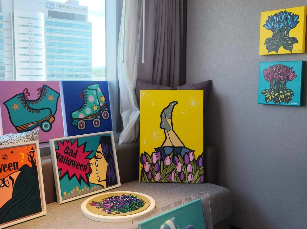 빛안 이원영 작가는 <꽃이 주는 위로>, <모두가 꽃이야>, <꽃이 흘러 피우다>, <꽃이 주는 기쁨> 등의 꽃 시리즈를 통해 수채화 특유의 번짐과 맑고 투명한 색감을 과슈를 이용하여 그려내고 있다.