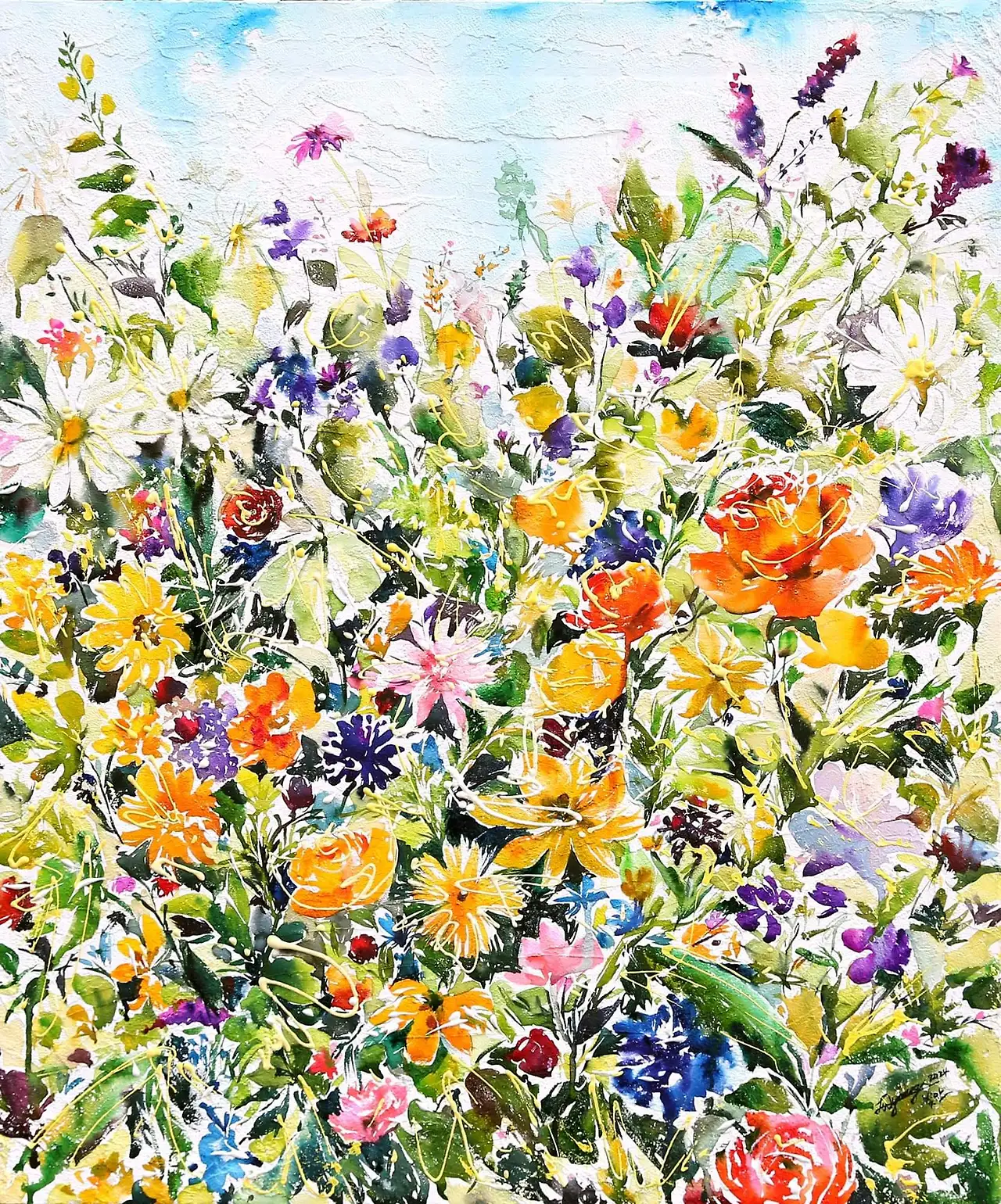 다양한 삶의 경험에서 오는 감성을 자신만의 필치로 잘 드러내어 컬렉터들의 사랑을 받고 있다. 특히 다양한 모양의 꽃들을 밑그림 없이 생동감 있게 캔버스에 섬세하게 담아내는 것이 특징인데 꽃은 비가 오나 눈이 오나 바람이 부나 구름이 끼나 어떤 날씨와 계절에도 상관없이 아름답고 화사한 자태로 주변을 밝혀주기 때문이다. 인생의 다양한 날씨와 계절의 변화가 우리의 삶을 심하게 흔들고 지나갈 때도 있지만, 자신의 자리를 꿋꿋하게 지키며 주변을 밝히는 꽃들처럼 밝게 살아가기를 희망하는 작가에게서 늘 밝음 가득한 긍정의 에너지를 얻게 된다.