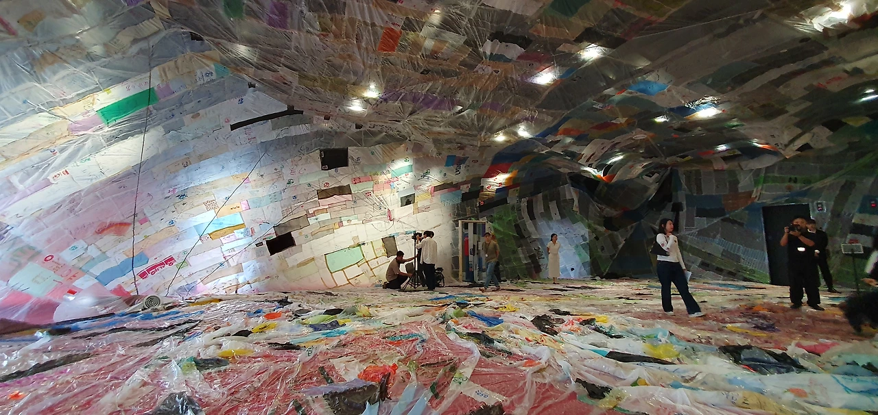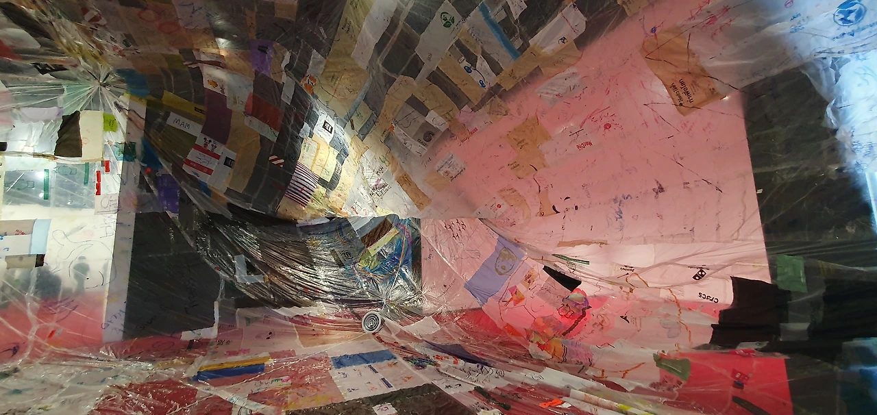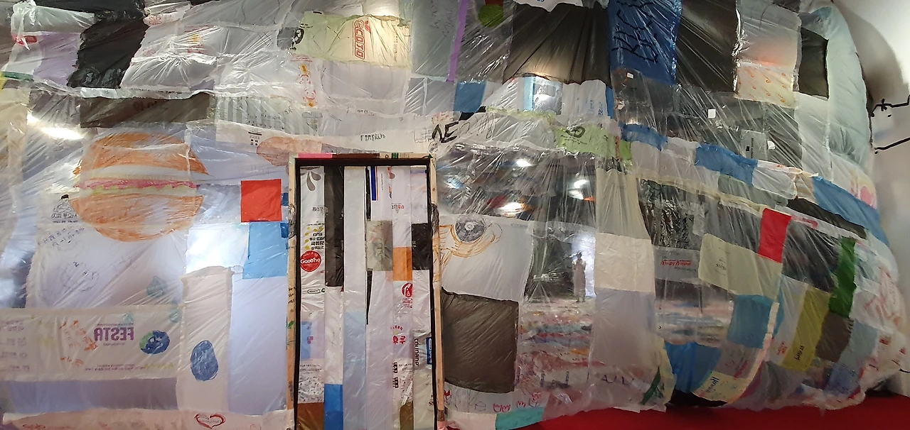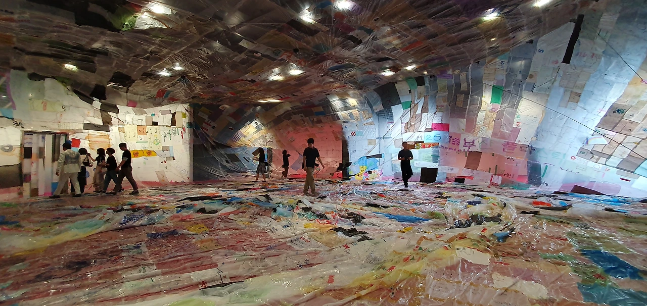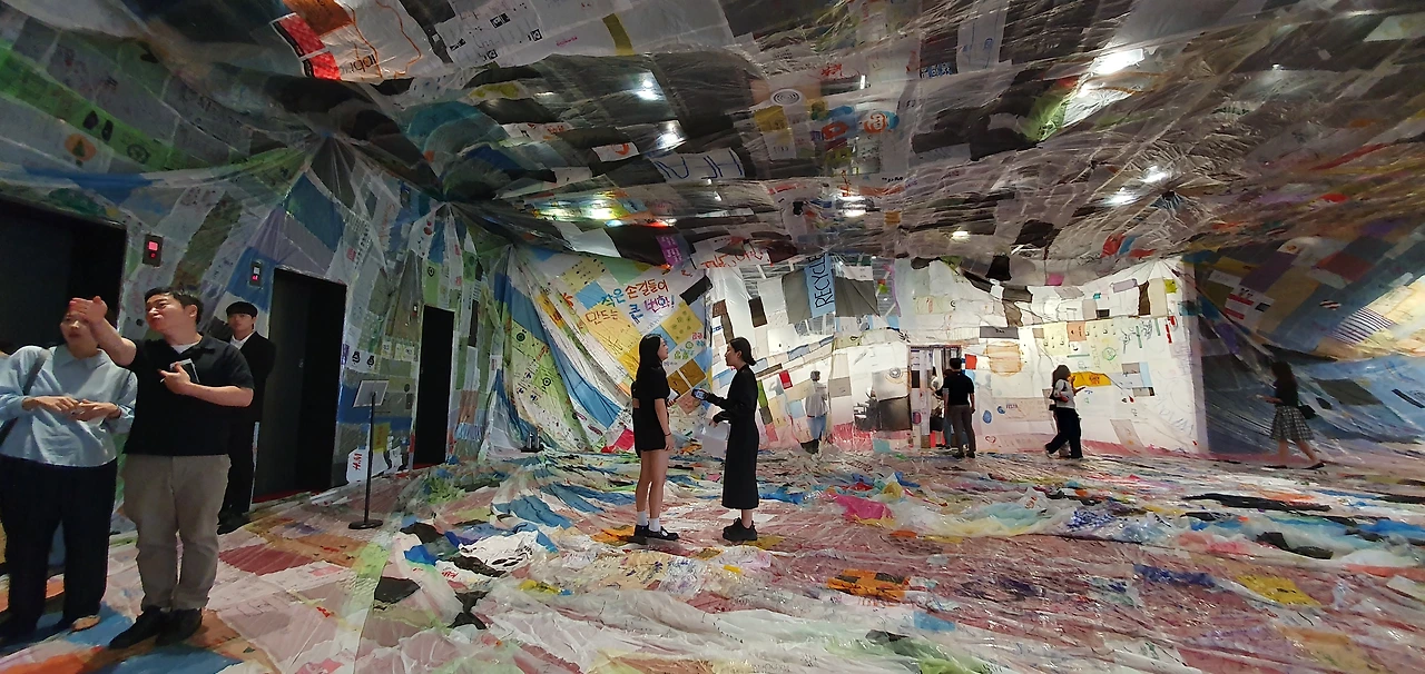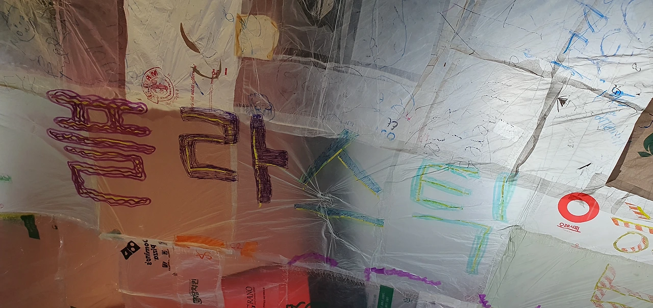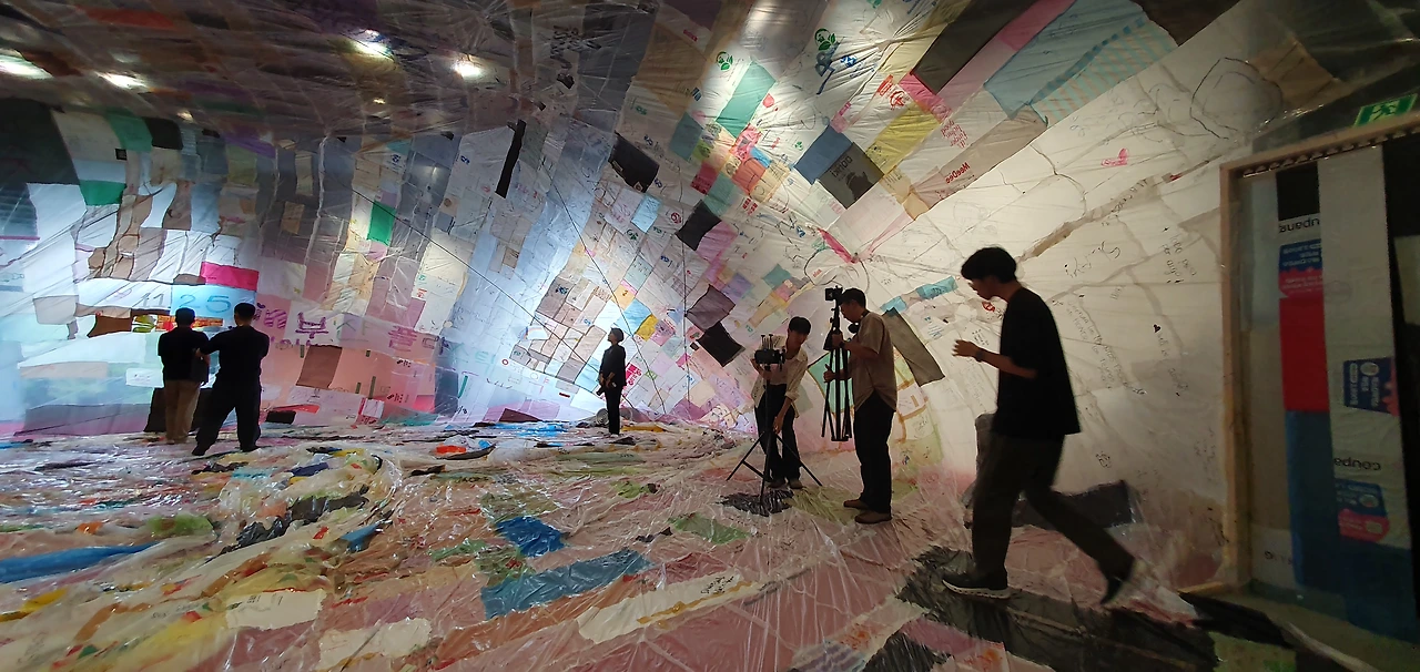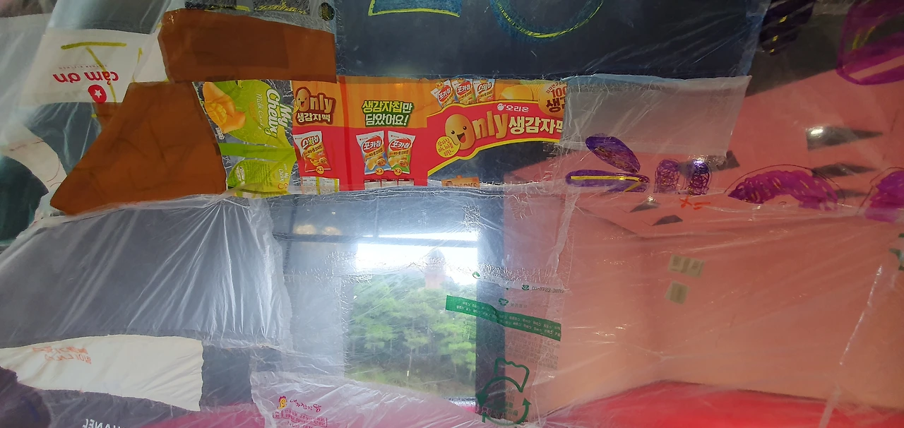 이후 수거된 비닐봉투를 오리고 붙이는 패치워크 작업과 그 위에 환경에 대한 참여자들의 관심을 드로잉과 메시지로 표현한다. 이 작업을 통해 폐기물로 간주되는 비닐봉투가 환경에 대한 커뮤니티의 목소리를 담아내는 연대의 매개체로 변모하는 과정을 확인할 수 있다.