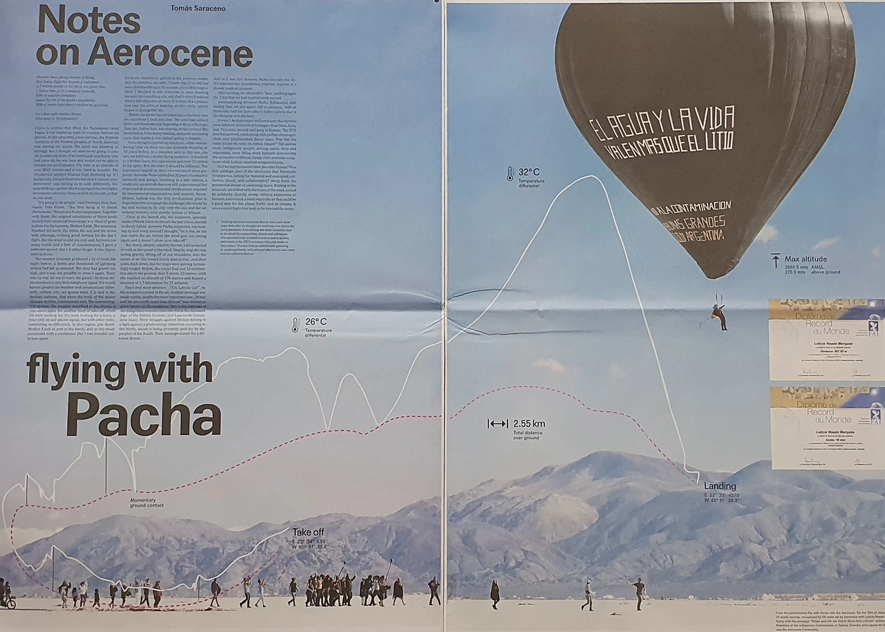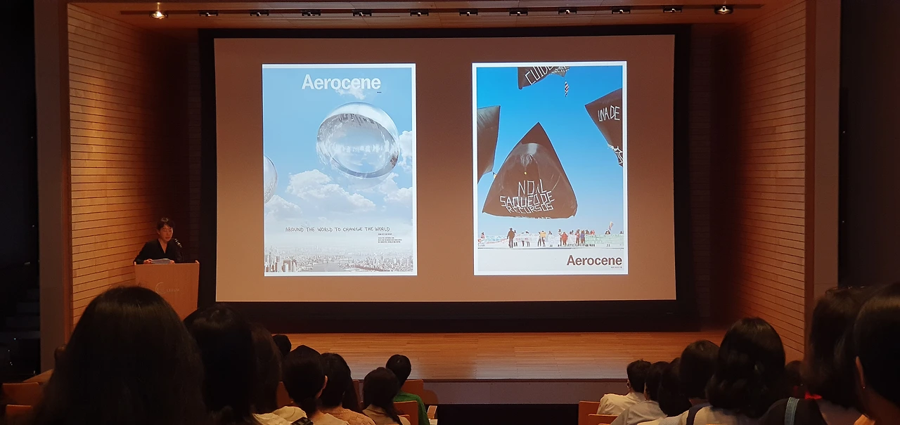 ‘에어로센(Aerocene)’은 전 세계의 다양한 예술가, 활동가, 지리학자, 철학자, 과학자, 기술자, 사상가 등이 모여 생태사회 정의를 위한 공동의 퍼포먼스를 펼치는 학제 간 커뮤니티이다. 토마스 사라세노가 시작한 에어로센은 커뮤니티 기반의 방식으로 발전해 현재 43개국, 6개 대륙 126개 도시에서 활동하고 있다. 에어로센 활동은 2007년 <무세오 에어로솔라> 작업과 함께 시작되어, 2015년 재단으로 설립되었다.