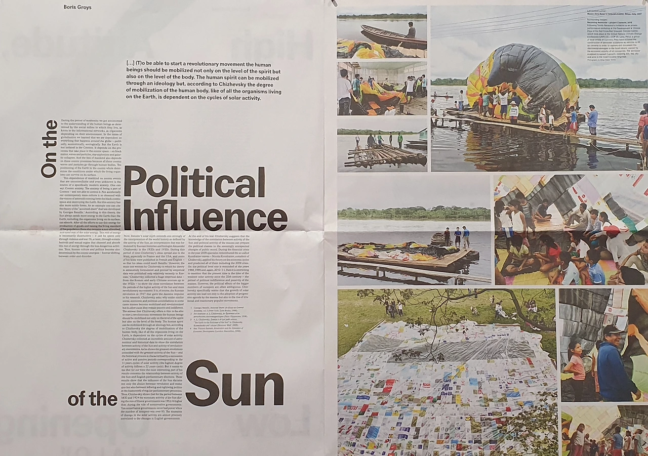9월에는 생태사회 정의와 기후 부채를 논의하는 패널 디스커션 외에 다큐멘터리 <에어로센을 향해 파차와 함께 날다> 상영, 『에어로센 뉴스페이퍼 I, II』 한국어판을 발간하여 토론과 공론의 장으로 여정을 마무리한다. 《에어로센 서울》은 인간 중심주의(Anthropocentrism)를 넘어서 공기 안에서, 공기와 함께 살아가는 새로운 방식을 사유하기를 제안한다.