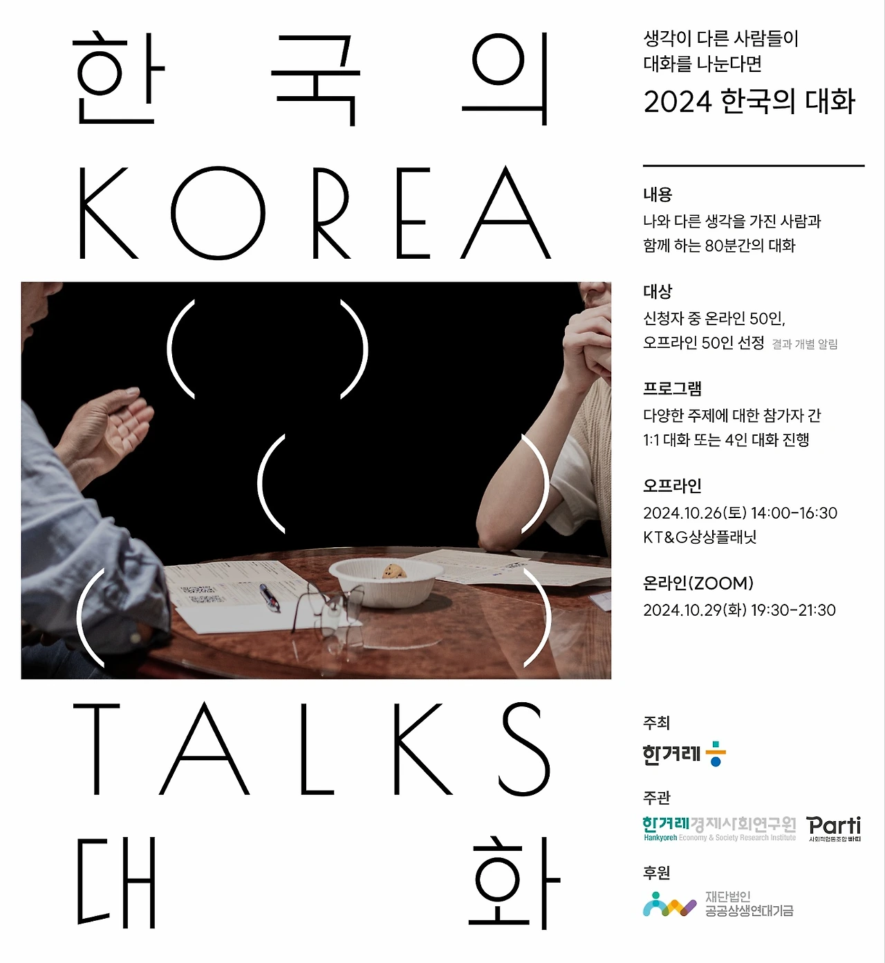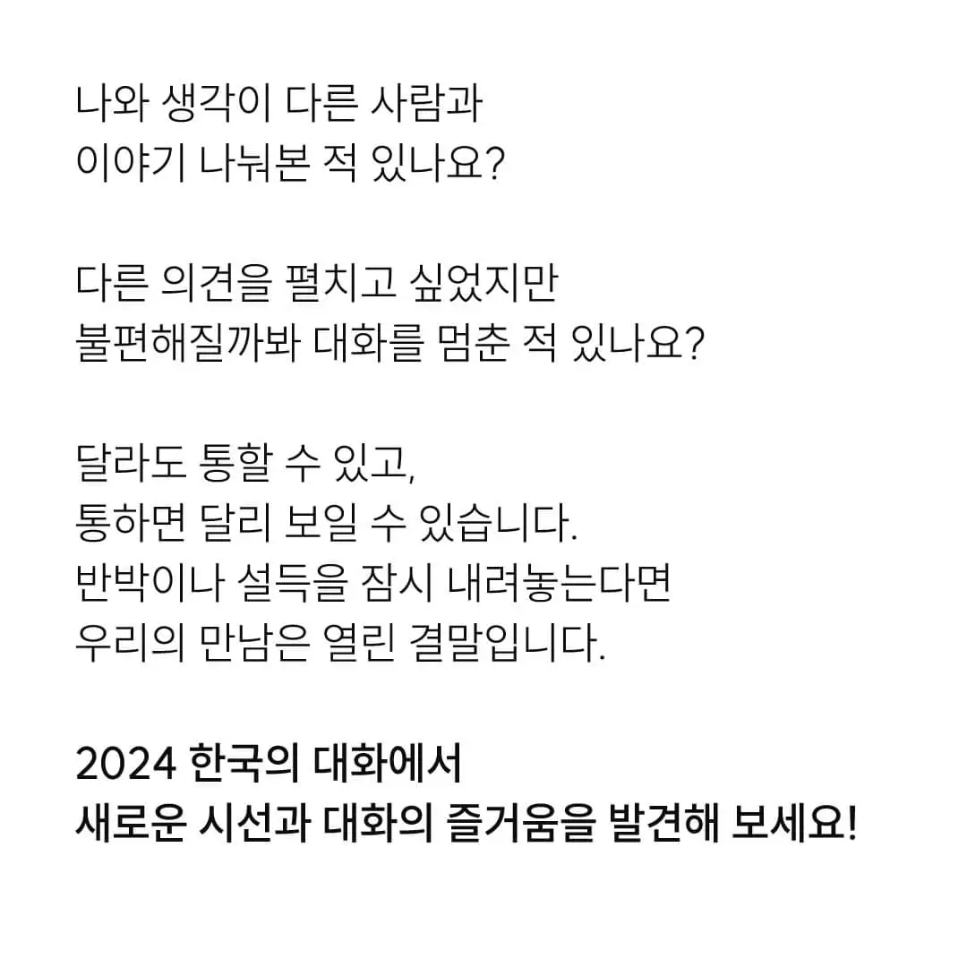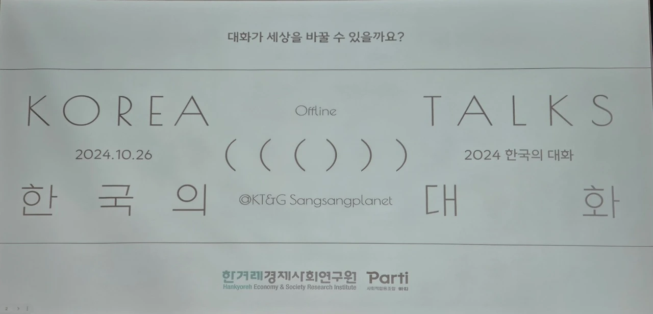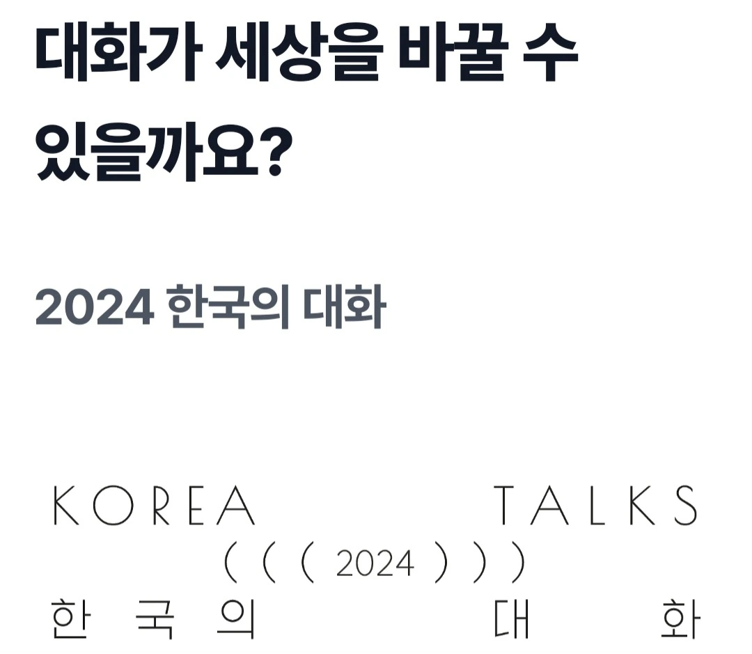 며칠 전 비록 소규모 모임이지만, 이 찢겨지고 갈라진 갈등과 대립의 우리 사회를 치유시키는 첫발걸음이라 할 수 있는 아주 의미있는 모임 '2024 KOREA TALKS(한국의 대화)'에 초대 받았었다.