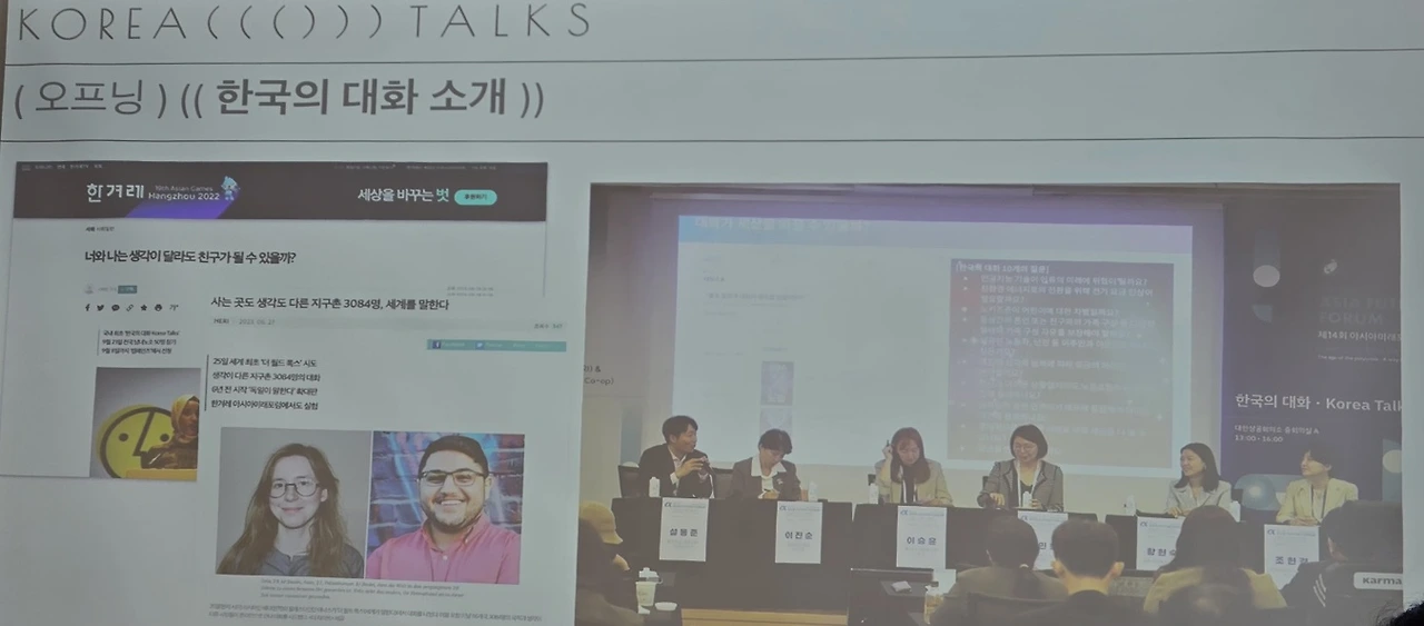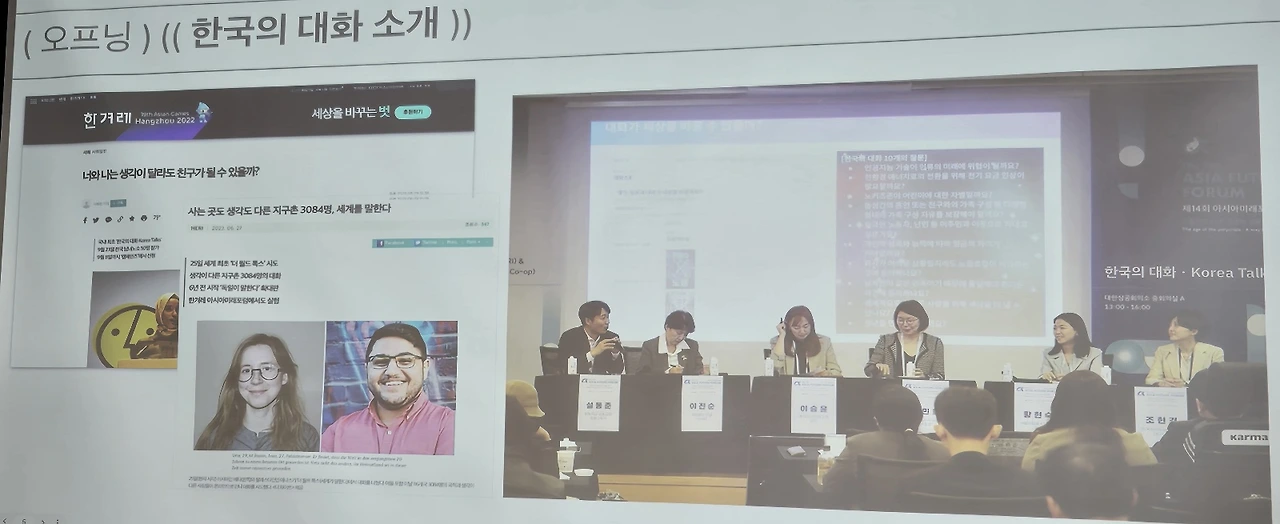 '한국의 대화·Korea Talks'는 독일의 유력 주간지 '디 차이트(Die Zeit)'가 시작한 '독일의 대화(Deutschland Spricht)'에서 영감을 받아 지난해 한국에서도 제14회 아시아미래포럼에서 처음으로 시도를 했으며, 나는 거기에도 함께 하며 그런 움직임에 박수를 보냈었다.