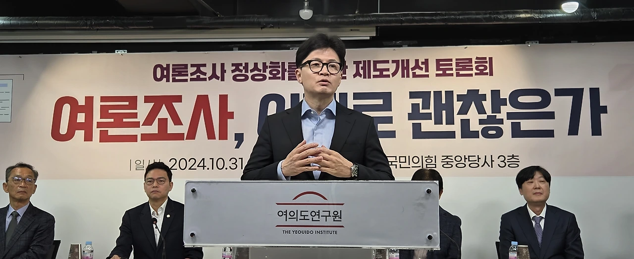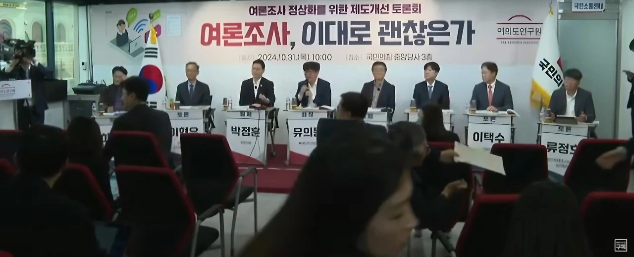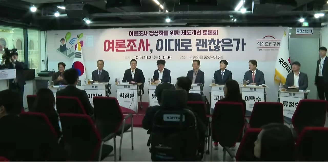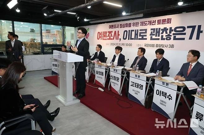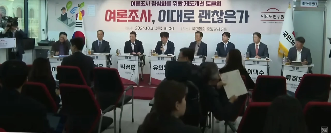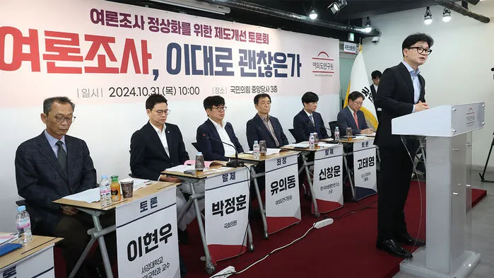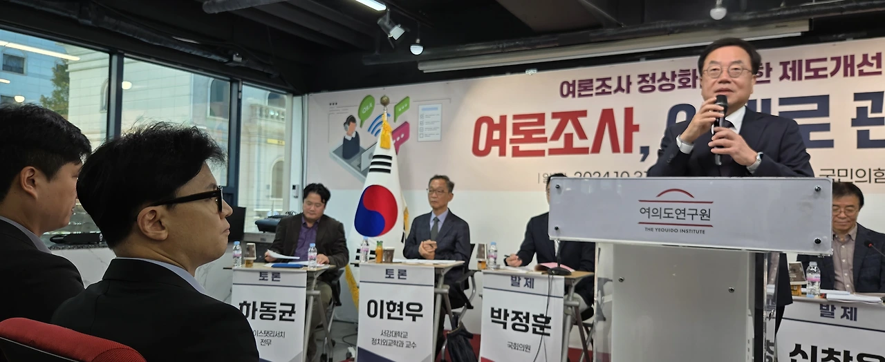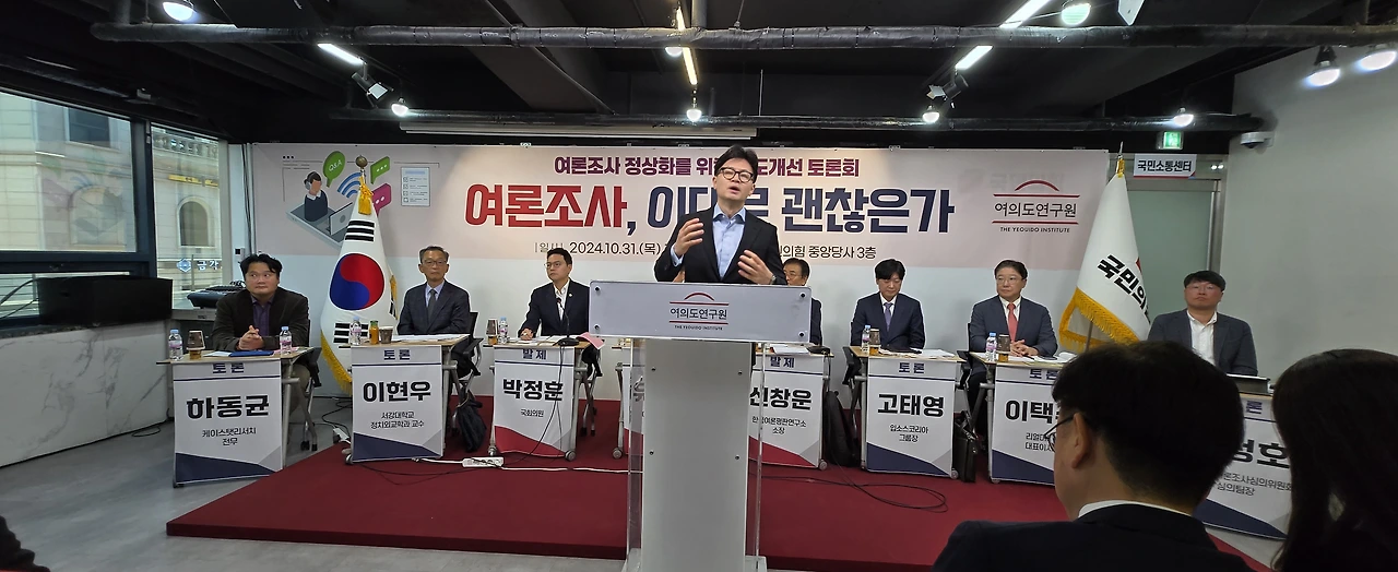 한동훈 당대표는 토론회 인사말에서 여론조사 불신을 경계하면서도 "국민들이 여론조사를 의심하기 시작했다"고 전제했다. "민심을 보여주는 게 아니라 왜곡하고, 다른 방향으로 이끄는 도구로 사용되는 게 아니냐는 의심"이라며 여론조사 자체가 선거운동 수단이 되거나 정치브로커와 야심가들의 놀이터, 영업장으로 전락해선 안 된다고 했다.