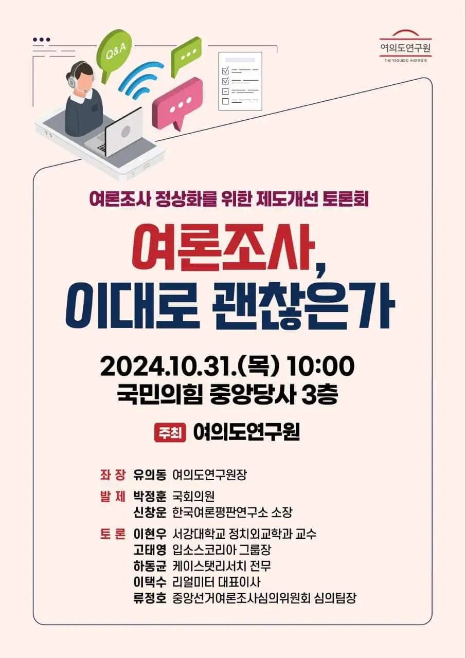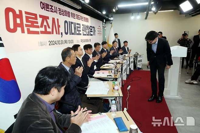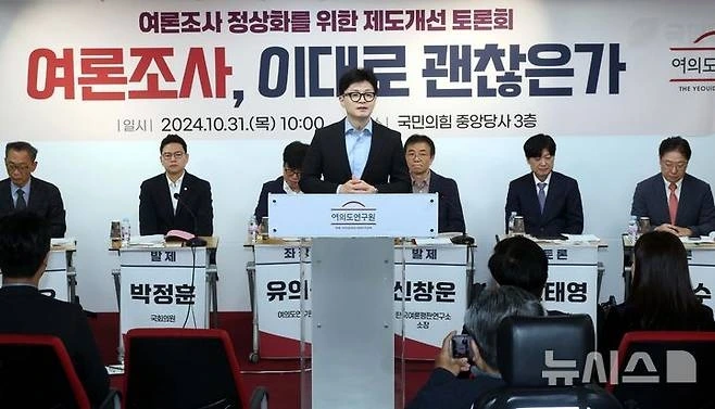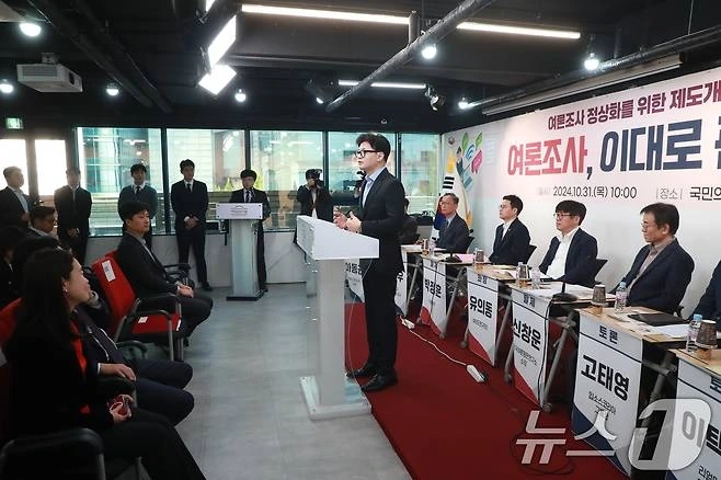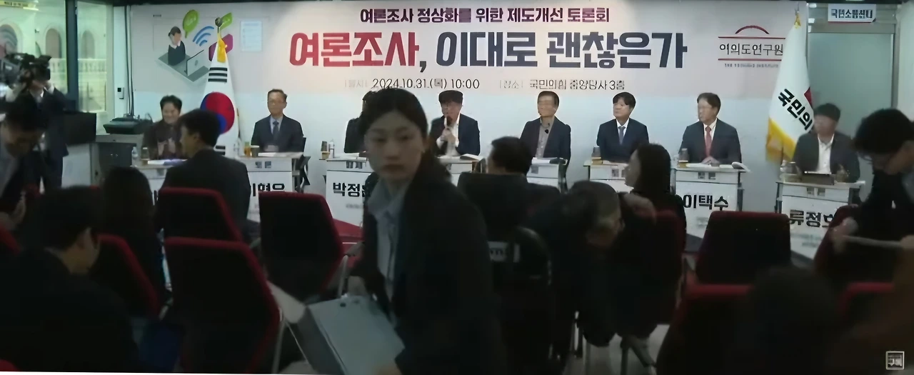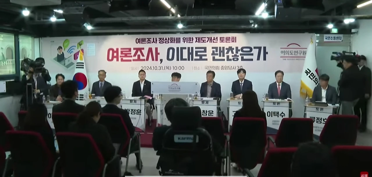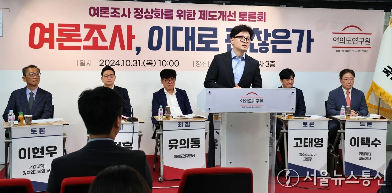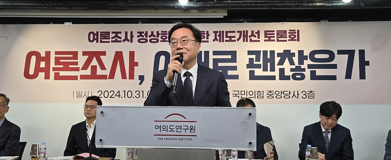 한동훈 당대표는 토론회 인사말에서 여론조사 불신을 경계하면서도 "국민들이 여론조사를 의심하기 시작했다"고 전제했다. "민심을 보여주는 게 아니라 왜곡하고, 다른 방향으로 이끄는 도구로 사용되는 게 아니냐는 의심"이라며 여론조사 자체가 선거운동 수단이 되거나 정치브로커와 야심가들의 놀이터, 영업장으로 전락해선 안 된다고 했다.
