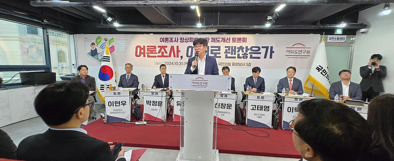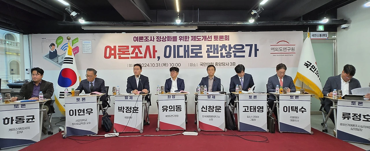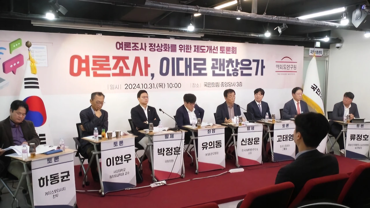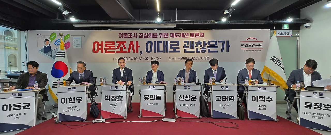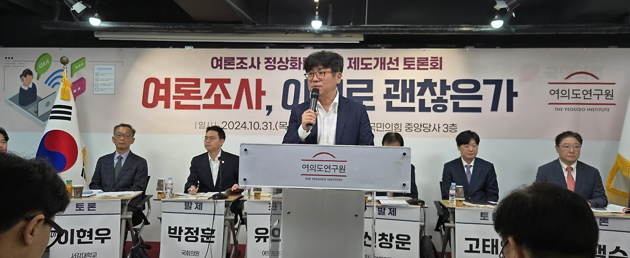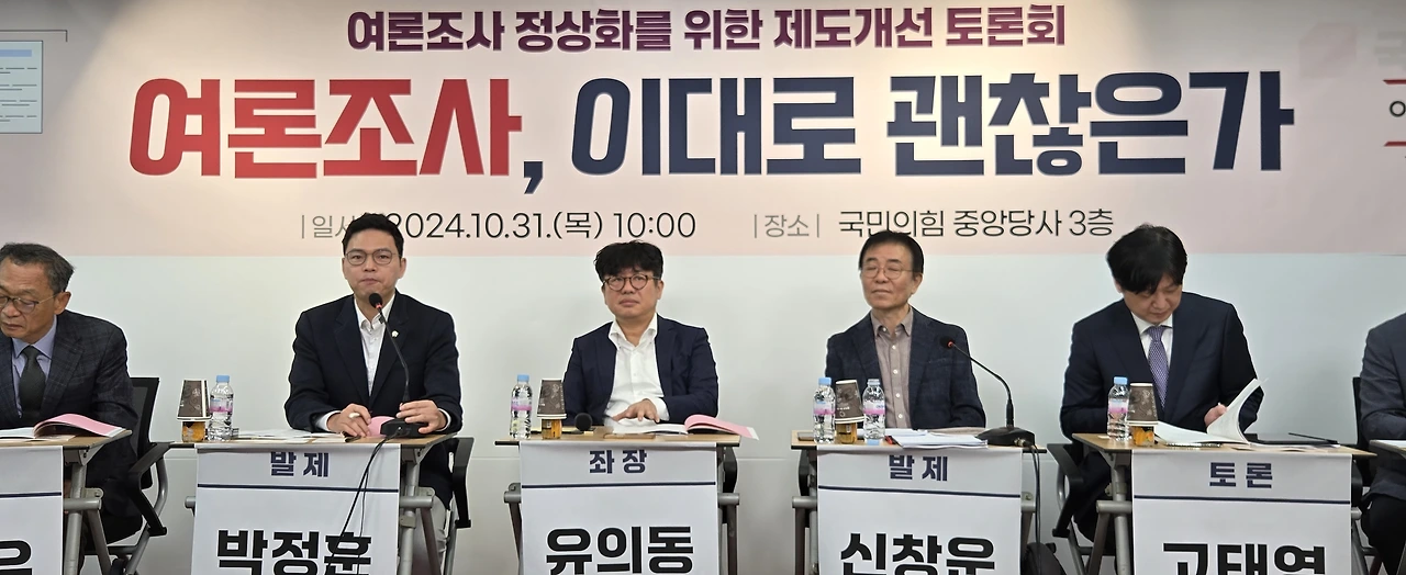 발제자 중 한명인 박정훈 국민의힘 의원은 "왜곡된 여론조사는 불법적 정치개입 의도"라며 규제·처벌 의지를 내세웠다. 그가 대표발의한 '명태균 방지법'엔 여론조사 기관 등록 취소 사유를 '선거여론조사 관련 범죄'에서 '공직선거법 또는 정치자금법 위반'으로 확대하고 이를 위반한 업체를 여론조사기관에서 영구 퇴출하는 내용이 담겼다.