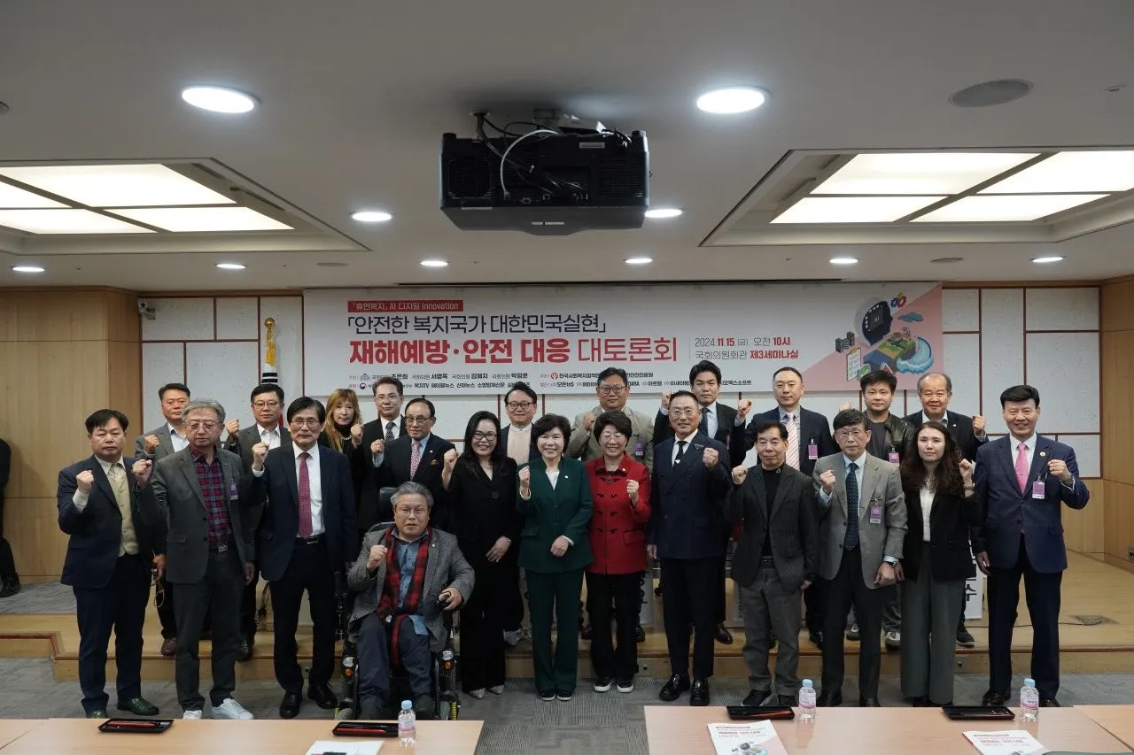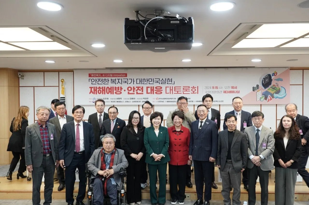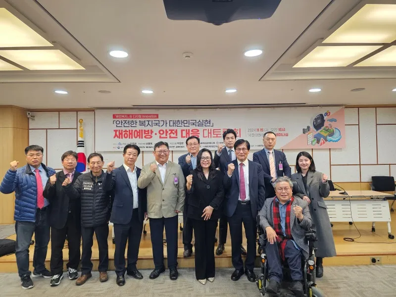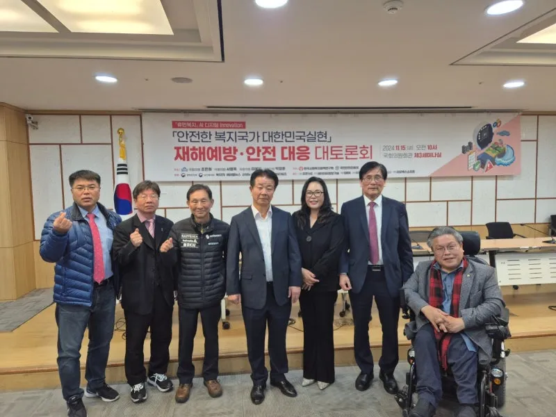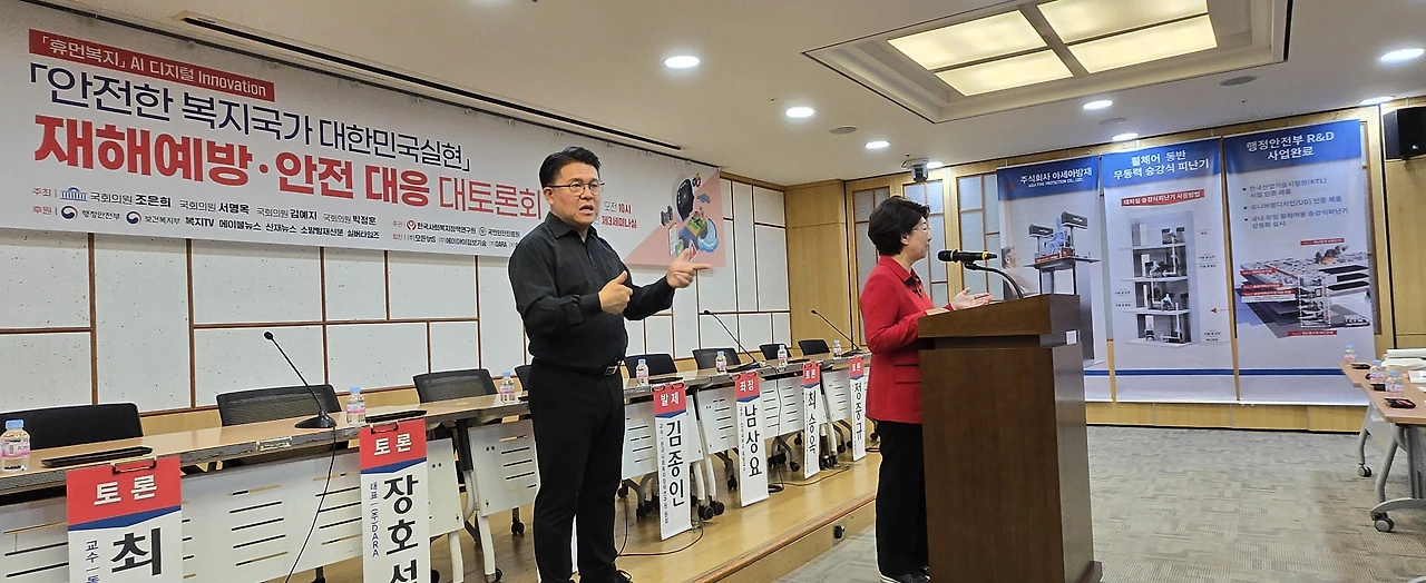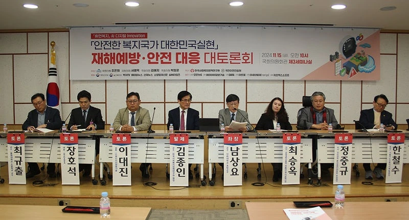 지난 11월 15일 국회의원회관 제3세미나실에서 ‘안전한 복지국가 대한민국 실현 재해예방·안전대응 국회 대토론회’가 조은희, 서명옥, 김예지, 박정훈 국회의원 주최, 한국사회복지정책연구원과 국민안전진흥원 주관, 행정안전부와 보건복지부 후원으로 열렸다. 이번 토론회는 "안전한 복지국가 대한민국 실현"라는 비전을 제시하고, AI 기술과 디지털 혁신을 통해 재해예방·안전대응을 강화하려는 취지로 개최됐다.