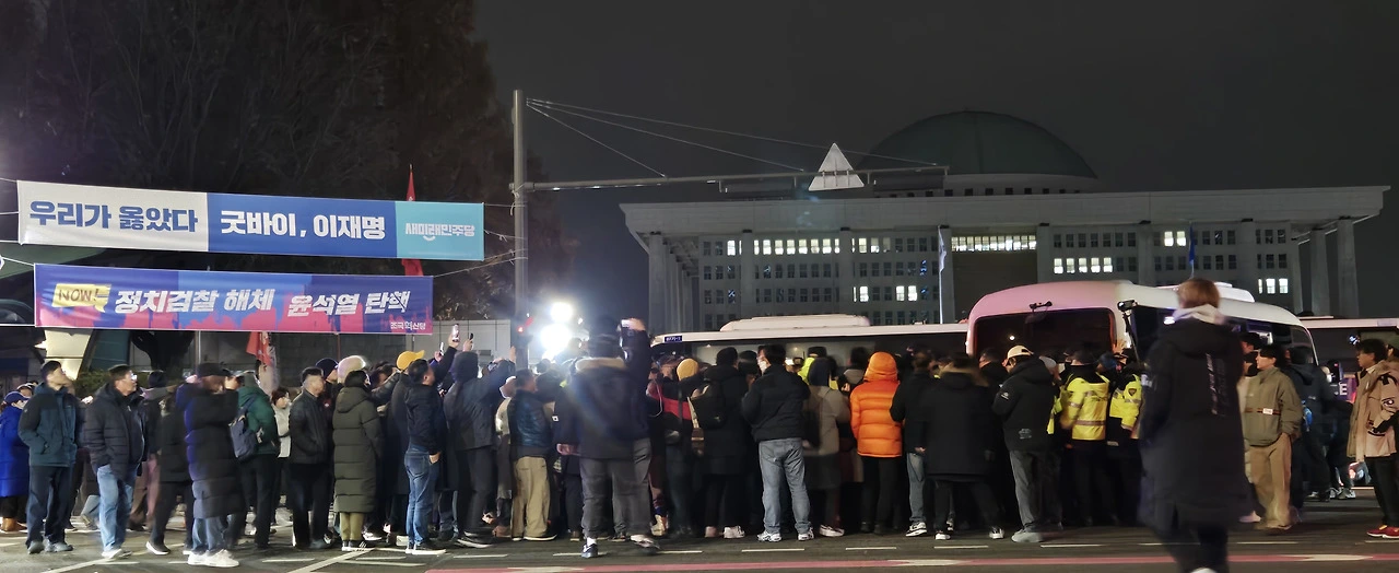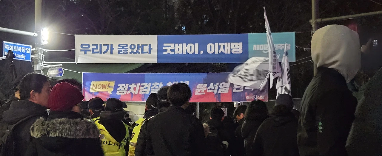 아래 사진들은 자정 무렵 국회 앞 정경이었는데, 계엄 발표 1시간도 되지 않았는데 벌써 국회 정문 앞에는 반윤석열 좌파 무리들이 떼로 몰려나와 "독재타도 계엄해제"를 외치고 있었다. 그들의 눈빛에서 발하는 적개심을 보면서, 적개심에 가득 찬 외침들을 들으며, 누가 국민들을 이처럼 서로 원수처럼 여기도록 만들었나 싶어 가슴이 아팠다.