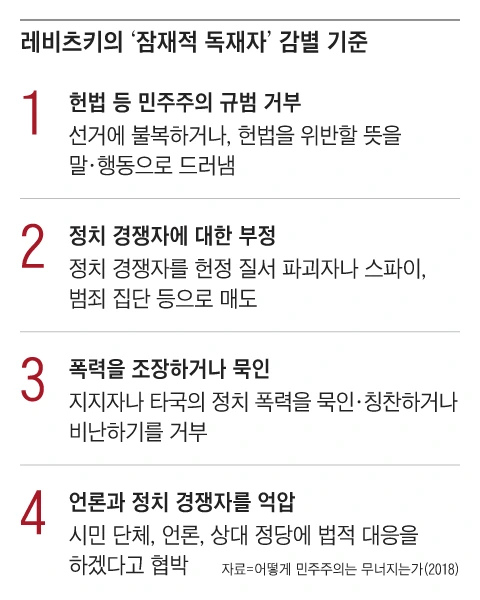 레비츠키는 “비상계엄이 결과적으로는 실패했기 때문에 민주주의 강국이라는 한국의 위상에 미치는 영향은 크지 않을 것”이라면서도 “정치인들이 규범을 준수하지 않고 모든 면에서 조심하지 않으면 언제든 이번과 같은 일이 되풀이될 수 있다”고 했다.