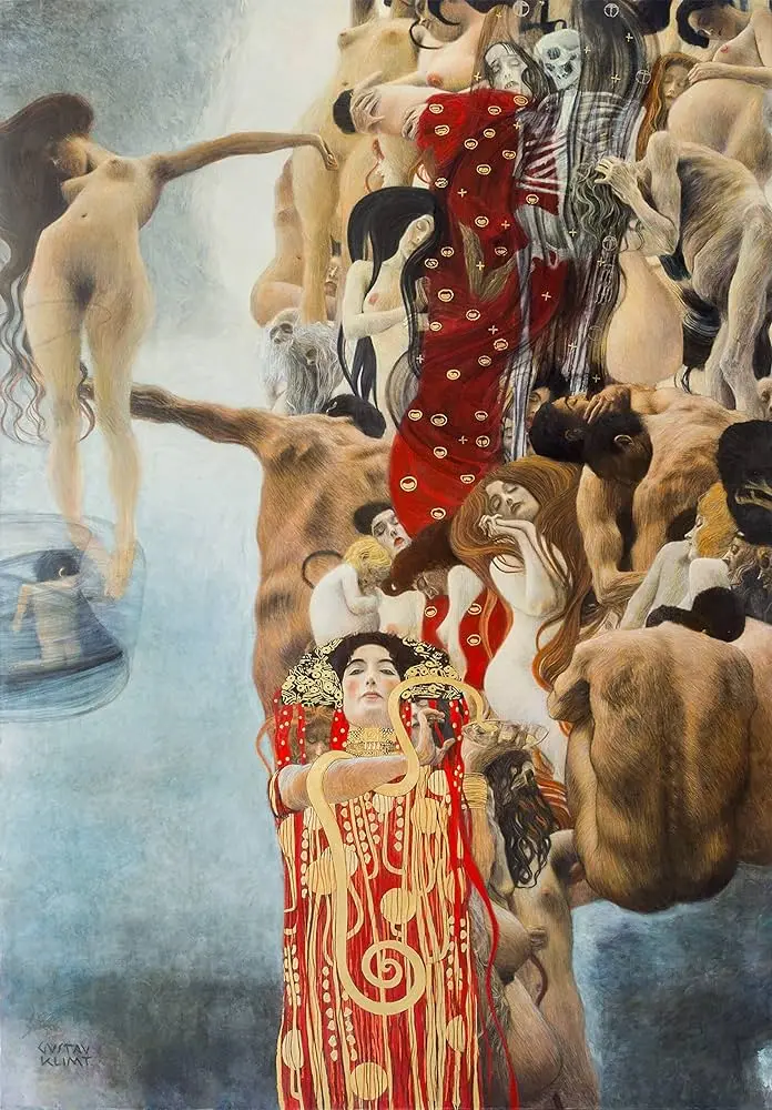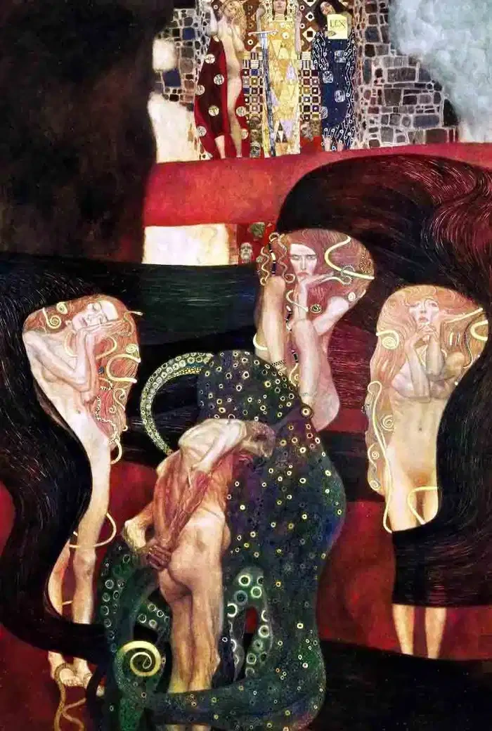 클림트는 1900년부터 철학, 의학, 법학의 순서로 하나씩 그림을 선보였는데, 그의 그림이 공개되기 시작하면서 비엔나는 그야말로 뒤집어져 버렸다. 지금 보아도 불편해할 사람은 무척 불편해 할만큼 그림은 과격했다. 사람들은 "이런 망칙한 그림을 지성의 전당인 비엔나 대학교의 대강당에 그려넣다니"하며 "포르노"라고 비난했다. 사실 어떤 면에서는 누드를 그린 것이 문제는 아니었다. 누드를 그리는 방식이었다. 그림을 주문한 사람이나, 대학교 측은 누드가 그려지더라도, 신고전주의 스타일의 차분한 누드를 생각했을지 모르겠다. 하지만 클림트가 그린 누드는 프랑스나 벨기에 같은 곳에서나 받아들일 수 있을 것 같은 아주 선정적인 누드였다.