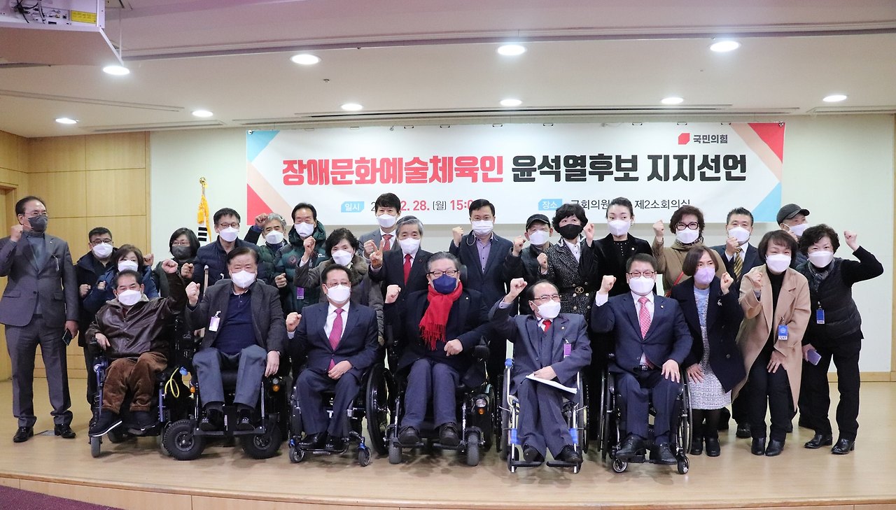 장애문화예술체육인 및 가족 4230명이 지난달 28일 국회에서 20대 대통령 선거에서 국민의힘 윤석열 후보 지지를 선언했다.