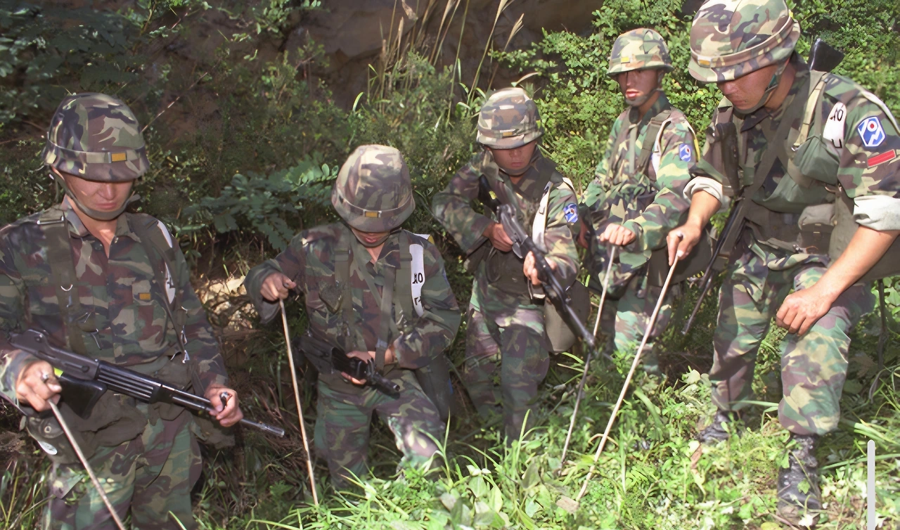 강릉 무장공비들을 추적하던 군인들이 작전 회의를 하고 있다. 중앙포토