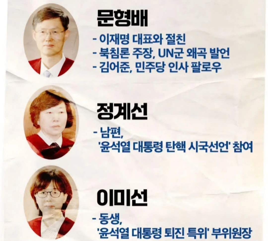 허 교수는 이어 문형배 헌재소장 대행이 과거 "자신은 우리법연구회에서도 가장 좌측에 있다"고 언급한 사실과 이미선·정계선 두 헌법재판관 가족이 윤석열 대통령 탄핵 운동의 선봉에 서서 활동한 것도 헌재 공정성 논란에 기름을 붓고 있다고 개탄했다.