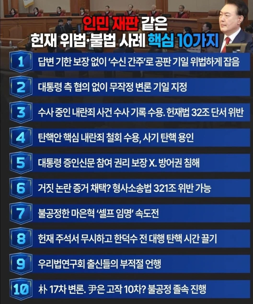 위법10. 박근혜 때 17차 변론, 尹 8차 변론으로 마무리? 안 될 말