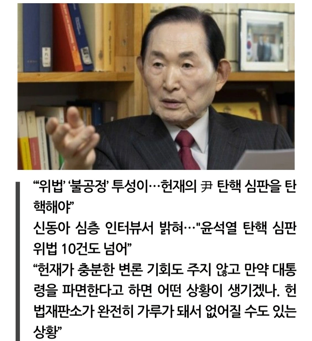 역시 존경하는 헌법학자 허영 경희대 석좌교수님 “헌법재판소가 어쩌다…‘위법’ ‘불공정’ 투성이…헌재의 尹 탄핵심판을 탄핵해야”