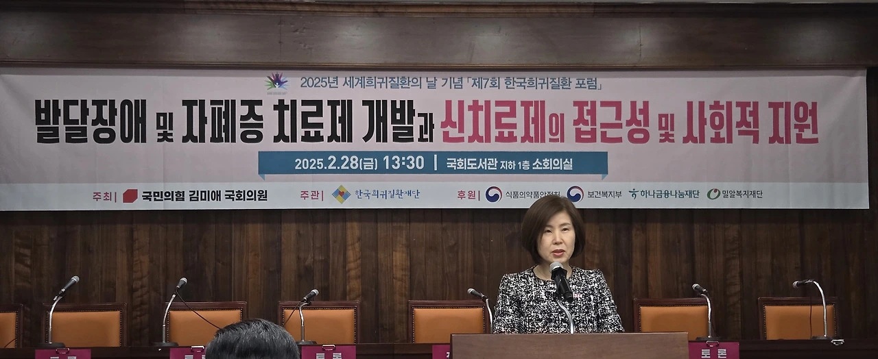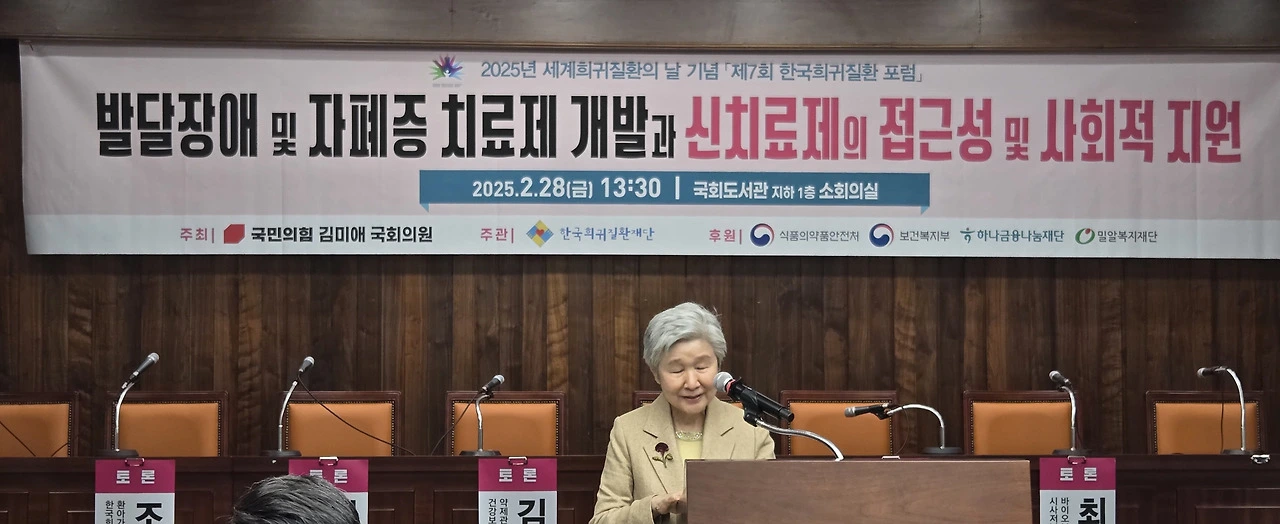 김미애 의원은 "희귀질환 환자와 가족들에게 치료제 접근성은 단순한 의료 문제가 아니라 생존과 직결된 문제"라며 "국회 보건복지위원회 여당 간사로서 희귀질환 치료제 연구 개발이 활발하게 이루어질 수 있도록 정부와 협력하고, 신약 도입 및 지원 체계 개선에 앞장서겠다"고 말했다.