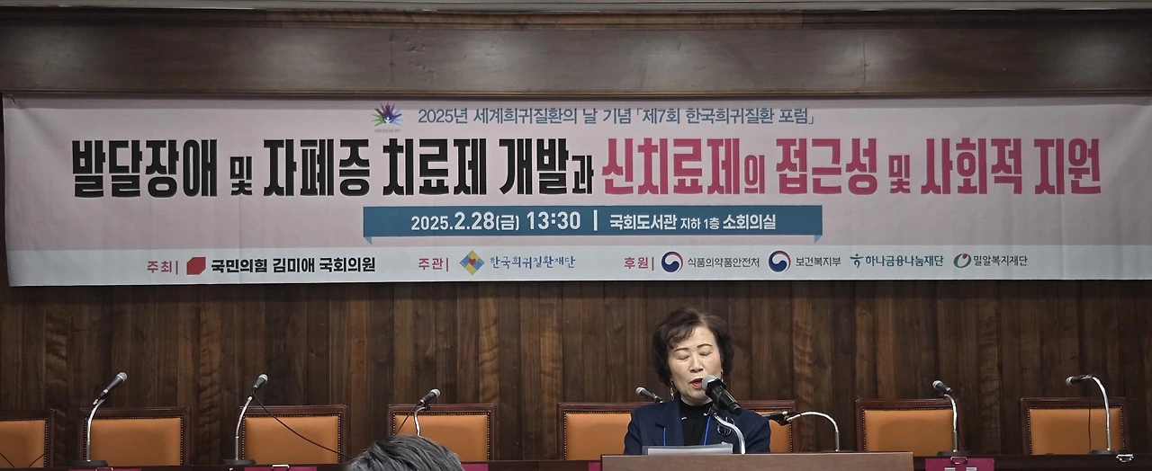 국회 보건복지위원회 간사인 국민의힘 김미애 의원(부산 해운대구을)은 28일 국회도서관 소회의실에서 한국희귀질환재단과 함께 '제7회 한국희귀질환 포럼'을 개최했다.