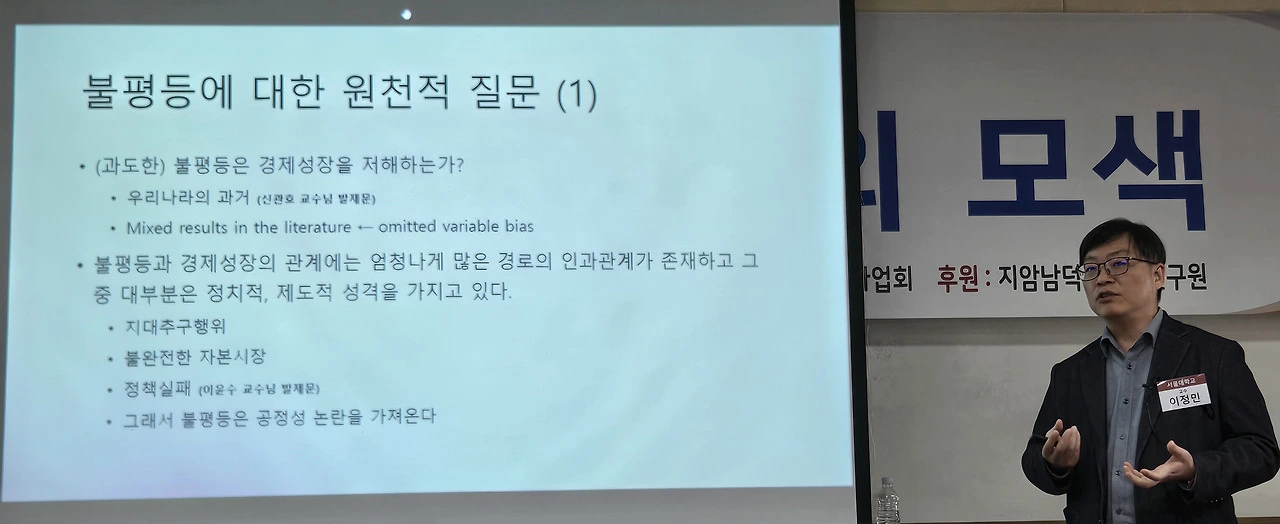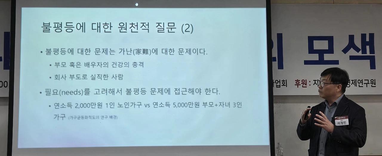 이정민 서울대 경제학부 교수는 "불평등은 정치적으로 취약한 용어이기 때문에 숫자를 정확히 봐야 한다"며 "데이터로 증명하고 논쟁을 투명하게 해나갈 필요가 있다"고 지적했다. 이 교수는 "국가 재정이 튼튼한 상태서 현금을 주면 기꺼이 받겠지만 가능하지 않은 상황"이라며 "누구 돈으로 주느냐가 문제"라고 말했다.
