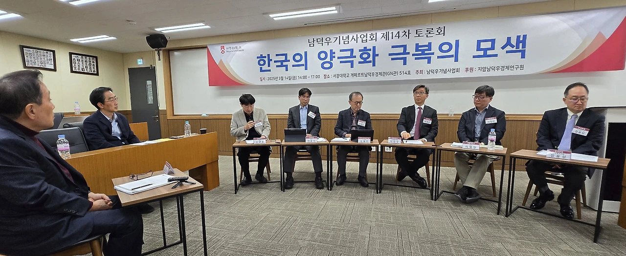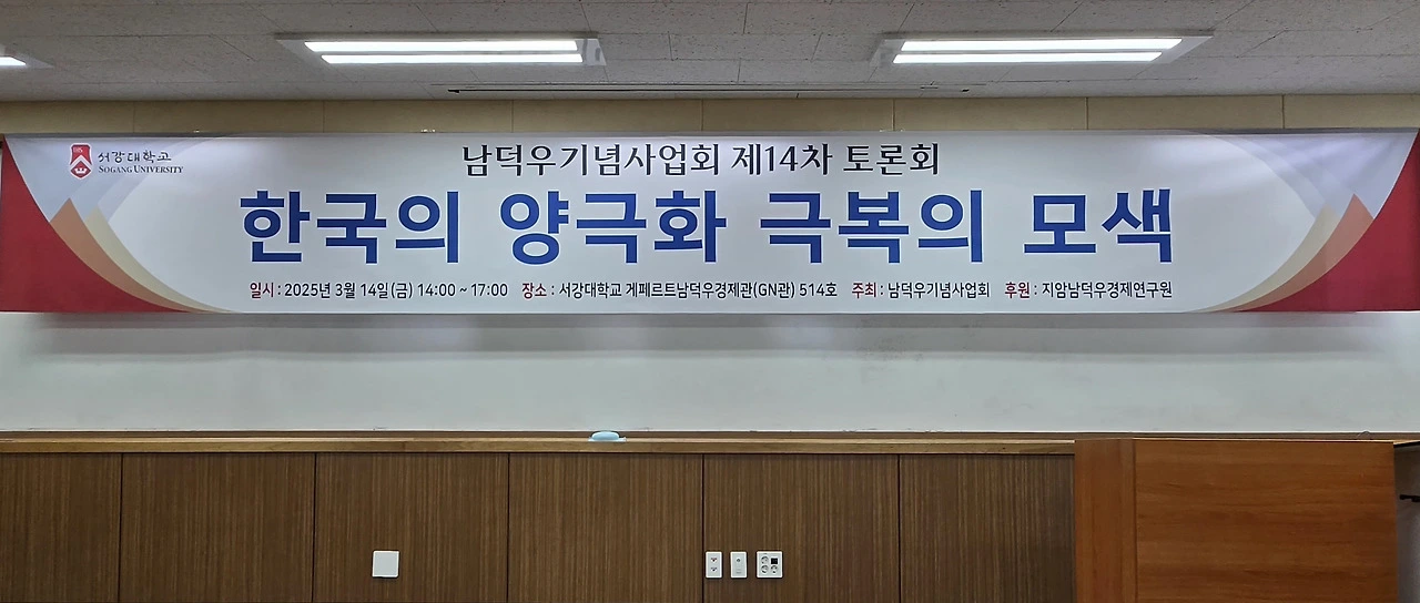 서강대학교 남덕우기념사업회(회장 김광두)는 3월 14일 서강대학교 게페르트남덕우경제관(GN관) 514호실에서 '한국의 양극화 극복의 모색'을 주제로 제14차 토론회를 개최했다. 이번 토론회에서는 급변하는 세계경제질서와 국내 정치사회 불안 극복의 핵심과제라 할 수 있는 소득불평등 문제를 어떻게 극복해 나갈 지에 대한 전문가들의 유의미한 발제와 토론이 펼쳐졌다.