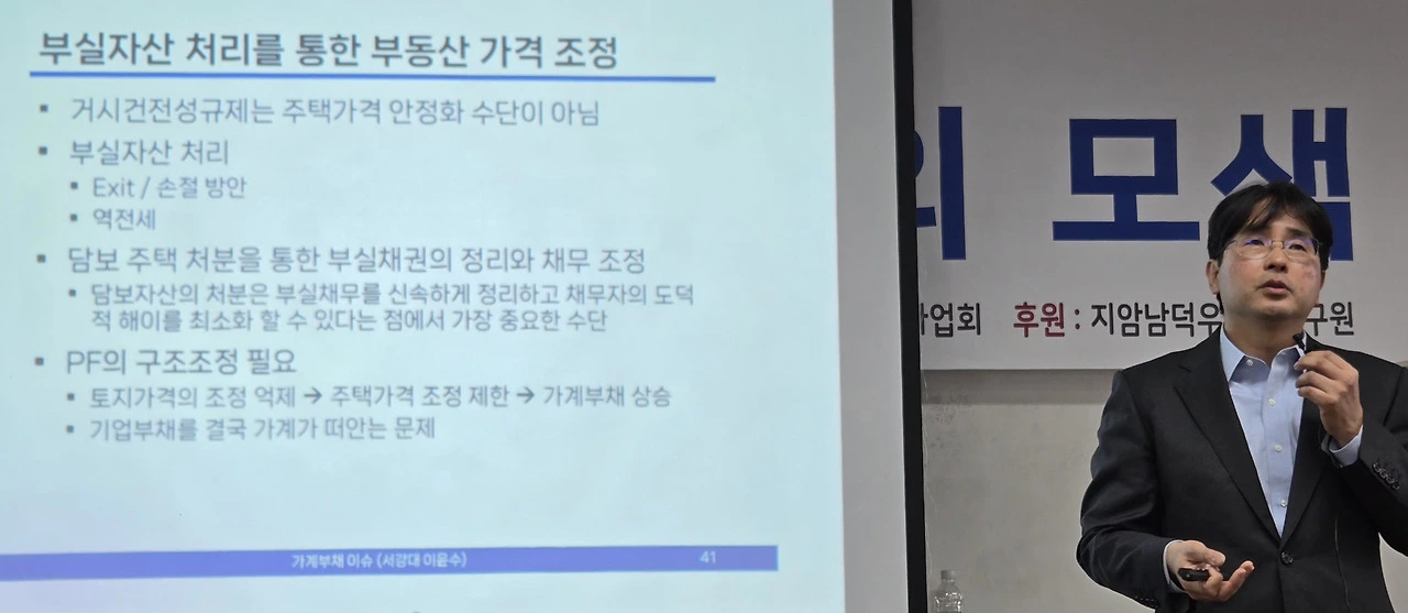 이 교수는 "고소득자인 영끌족의 가계부채가 늘어났지만, 건전성은 사실 더 높다. 가계대출이 늘어서 위험하다고 하지만 건전성 측면에서는 담보가 가장 좋고, 소득 많은 젊은층이 산 것"이라며 "은행의 대출이 기업이 아닌 가계로만 가는 것은 심각한 문제지만 가계부채가 늘어나는 것을 폭탄 터질 것처럼 보고 있는 것은 잘못된 것이라는 생각"이라고 주장했다.