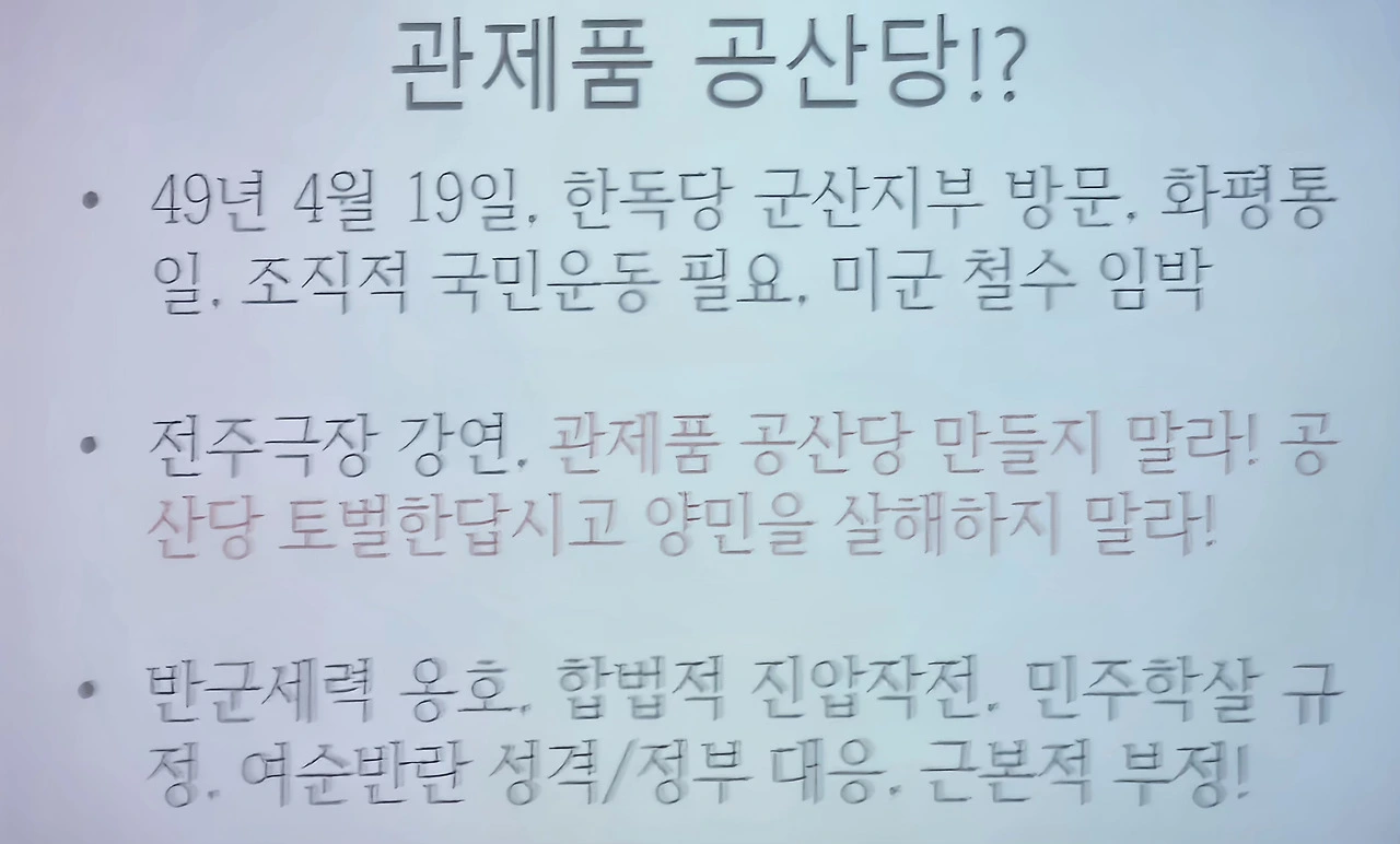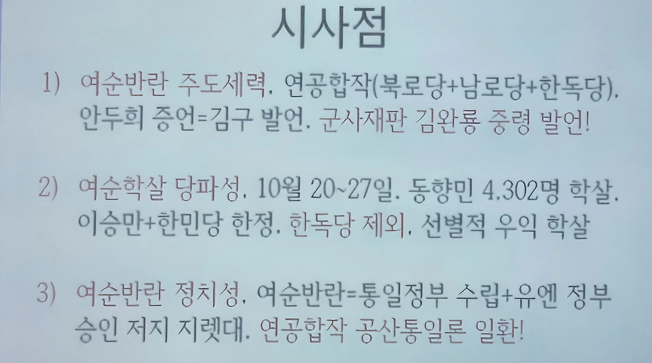 “1948년 여순사건과 김구 개입설 검토” 강연 요지