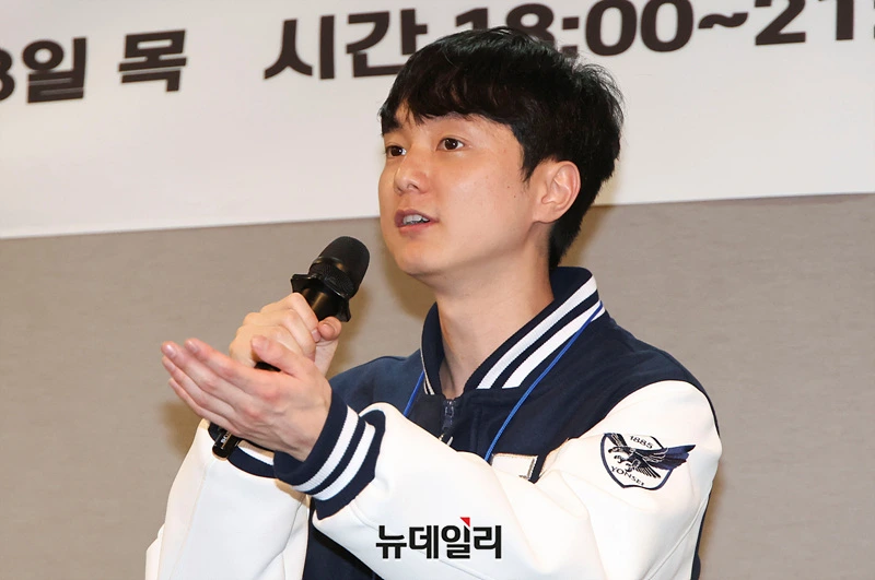 자유대학 부대표이자 지난달 10일 전국 대학 최초로 연세대 탄핵 반대 시국선언을 주최해 대학생 시국선언의 물꼬를 튼 주역인 연세대 3학년 박준영 씨가 지난 13일 오후 서울 성북구 안암동 고려대 수당패컬티하우스에서 열린 '자유대학생과 교수님의 만남'에서 발언하고 있다. ⓒ뉴데일리 서성진 기자