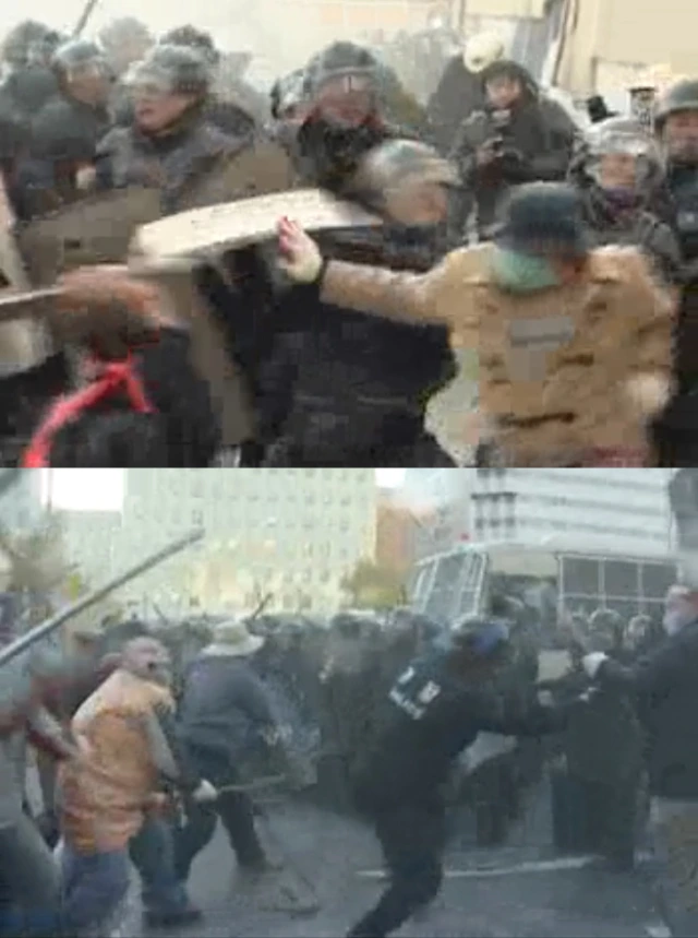 노무현 정부 때인 2005년 11월 시위대를 공격하는 경찰과 경찰을 공격하는 시위대. MBC 캡처