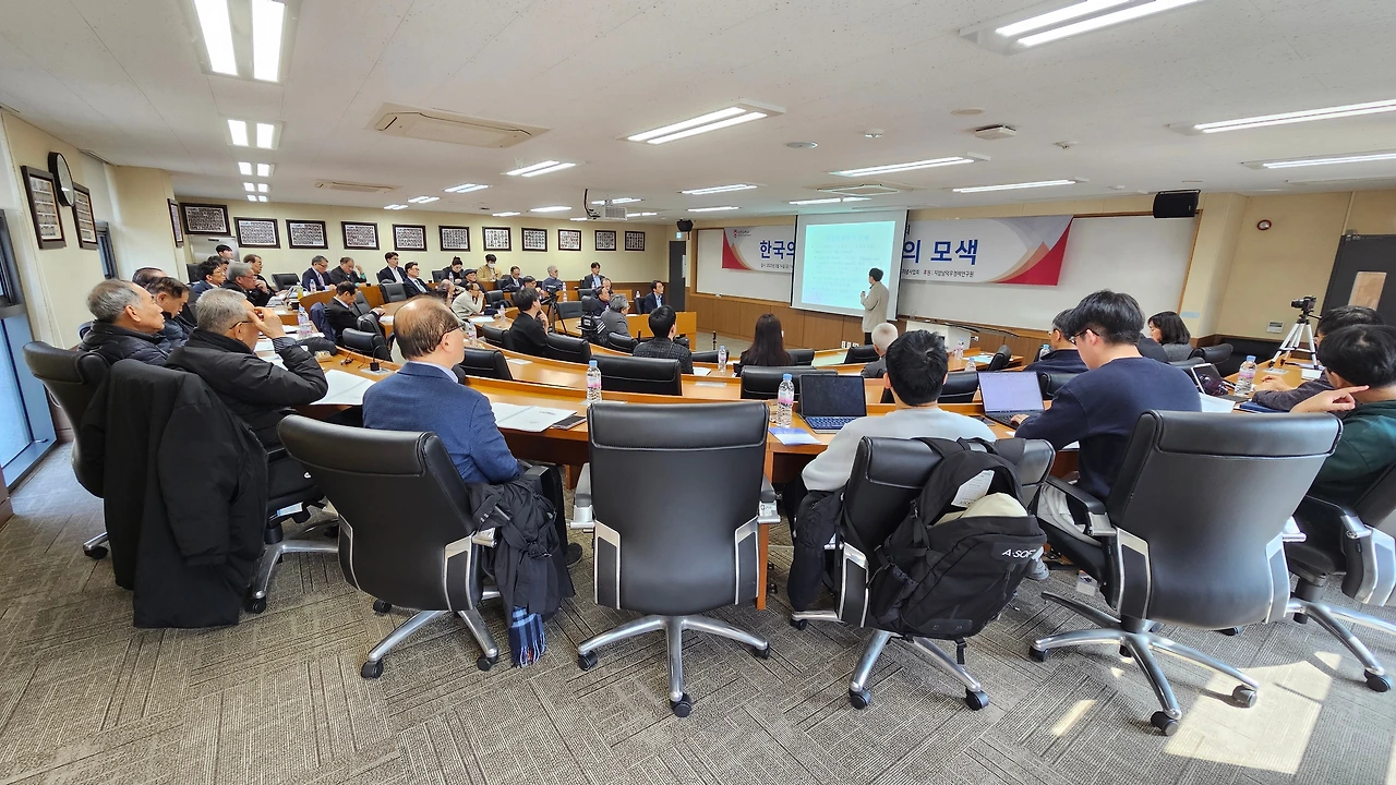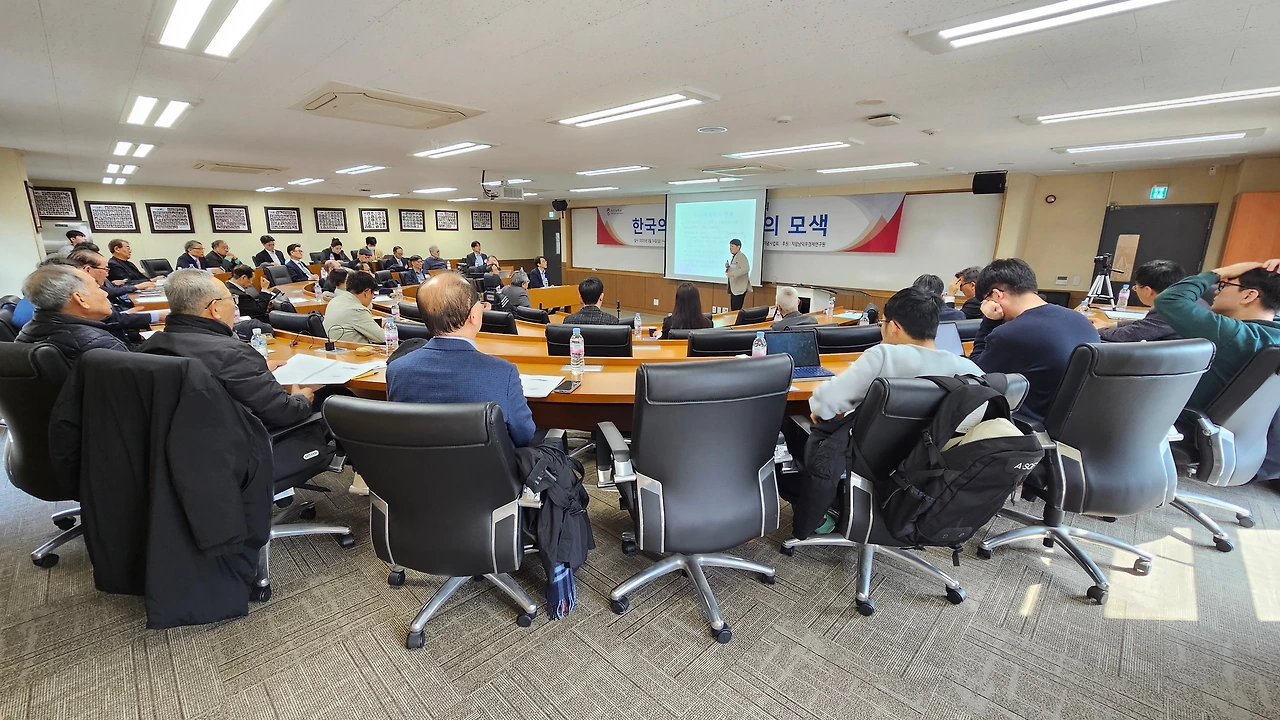 <사진은 발제자 및 지정토론자들의 토론장면. 좌로부터 신관호 교수, 이윤수 교수, 김재진 원장, 박정수 교수, 이정민 교수, 장용성 위원>