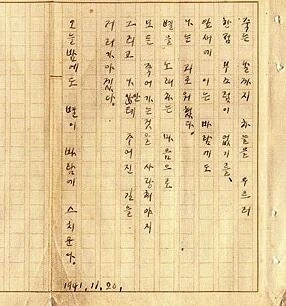 시인 윤동주가 1941년 '서시'를 쓴 육필 원고.